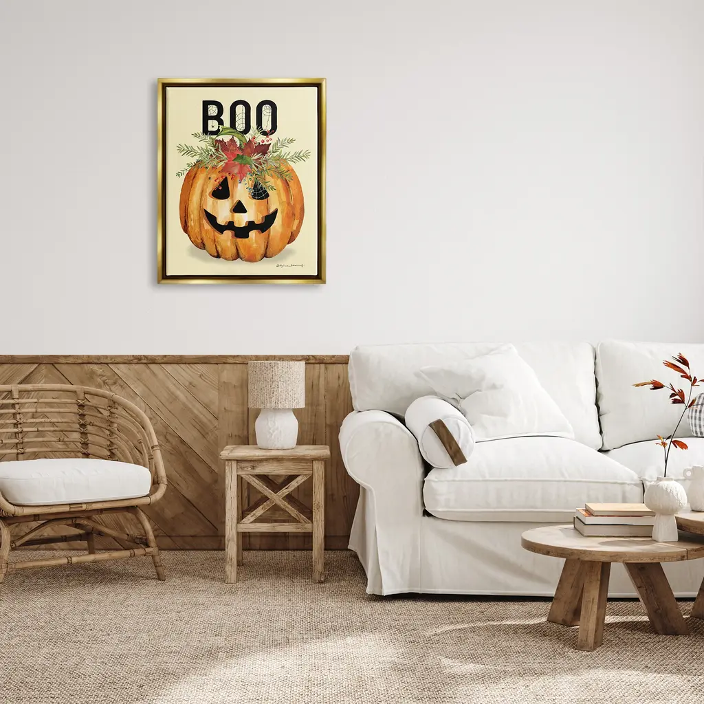 Stupell Boo Seasonal Halloween Flowers Framed Floater Canvas Wall Art By Stephanie Workman Marrott - 24 X 30 - Gold