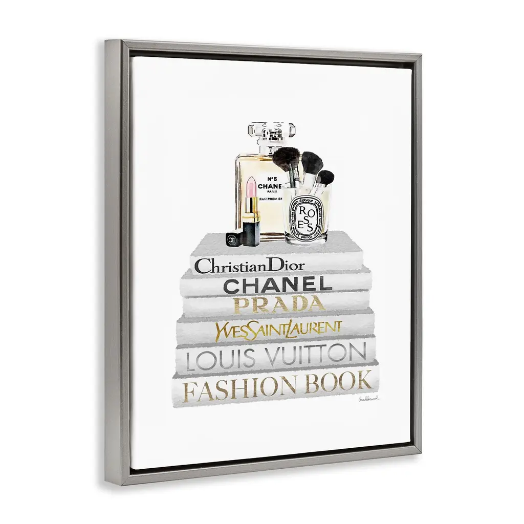 Elevate your home or office to the next level with Stupell Framed Floating Canvas Wall Art. Our premium hand-stretched canvas is mounted securely into a sturdy lightweight frame. The museum-style gap between the wrapped canvas and the box frame gives the illusion of floating artwork. Stupell Wall Art is made in the USA.Features: Dimensions: 17 x 1.7 x 21 Frame, 16 x 1.5 x 20 Canvas ArtFloating Frame Canvas Products are available in sizes 17"x21" and 25"x31". All Floating Frame Canvas Products have a 1.7" Depth.Wall Art is Ready to Hang with Hardware Free Hanging. No Installation required. For Easy Set Up Lean or Layer Artwork on Shelf or Against Wall. Artwork is Permently Fixed into the Frame.Our elevated 1.7" Thick Floating Frame is the perfect complement to our canvas style Wall Art. We use only the highest quality inks in house with industry leading printing solutions. Canvas is hand stretched over a durable wood foundation and then mounted securly into a Modern Box Frame. Made in the USA.Artwork Relates To: Glam, Fashion, Bookstack, Makeup, Accessories, BeautyDesign by Amanda Greenwood