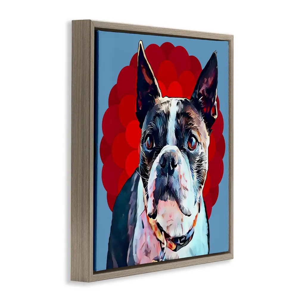 Elevate your home or office to the next level with Stupell Framed Floating Canvas Wall Art. Our premium hand-stretched canvas is mounted securely into a sturdy lightweight frame. The museum-style gap between the wrapped canvas and the box frame gives the illusion of floating artwork. Stupell Wall Art is made in the USA.Features: Dimensions: 18 x 1.7 x 18 Frame, 17 x 1.5 x 17 Canvas ArtFloating Frame Canvas Products are available in sizes 18"x18" and 25"x25". All Floating Frame Canvas Products have a 1.7" Depth.Wall Art is Ready to Hang with Hardware Free Hanging. No Installation required. For Easy Set Up Lean or Layer Artwork on Shelf or Against Wall. Artwork is Permently Fixed into the Frame.Our elevated 1.7" Thick Floating Frame is the perfect complement to our canvas style Wall Art. We use only the highest quality inks in house with industry leading printing solutions. Canvas is hand stretched over a durable wood foundation and then mounted securly into a Modern Box Frame. Made in the USA.Artwork Relates To: Animal, Pet, Dog, Portrait, Pop, Abstract, GeometricDesign by Kim Curinga