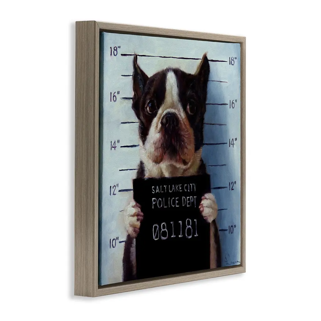 Stupell Boston Terrier Jail Convicted Mugshot Framed Floater Canvas Wall Art Design By Lucia Heffernan - 18 X 18 - Brown