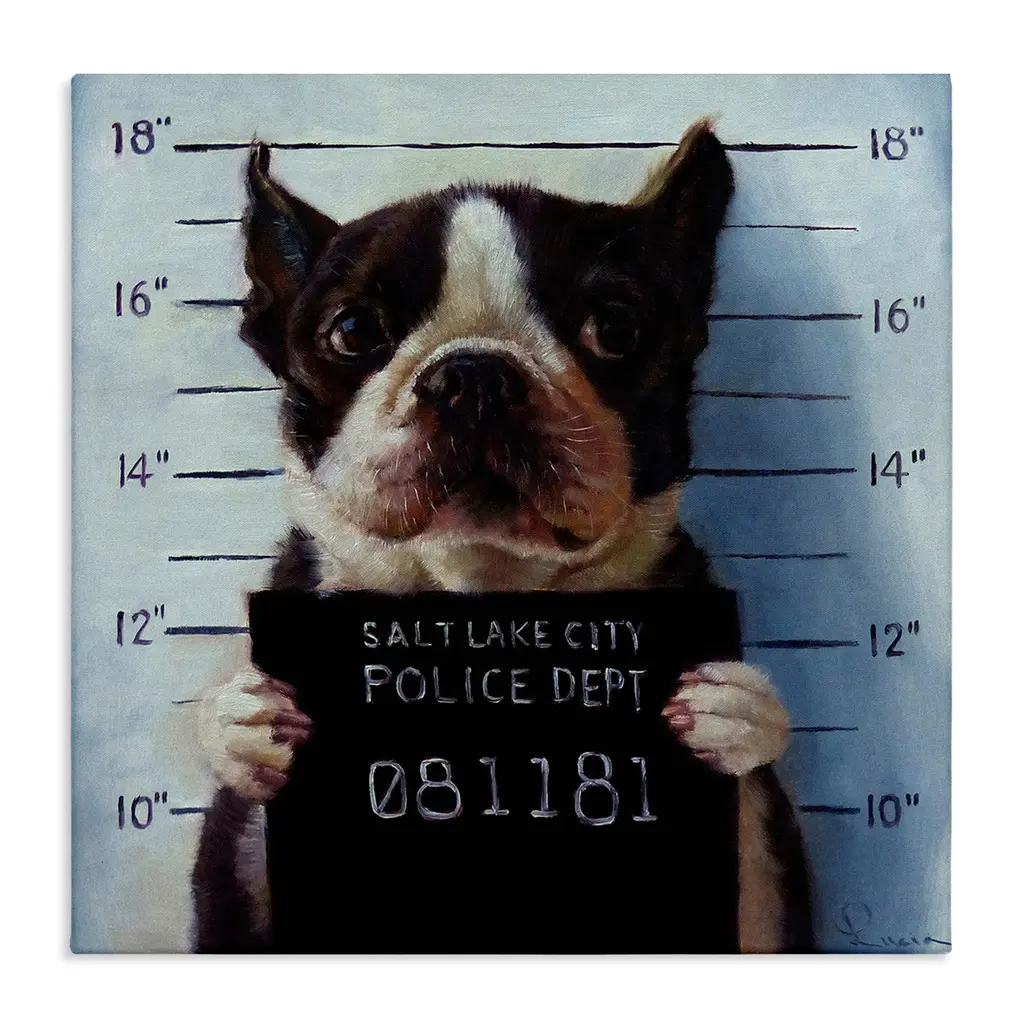 Elevate your home or office to the next level with Stupell Framed Floating Canvas Wall Art. Our premium hand-stretched canvas is mounted securely into a sturdy lightweight frame. The museum-style gap between the wrapped canvas and the box frame gives the illusion of floating artwork. Stupell Wall Art is made in the USA.Features: Dimensions: 18 x 1.7 x 18 Frame, 17 x 1.5 x 17 Canvas ArtFloating Frame Canvas Products are available in sizes 18"x18" and 25"x25". All Floating Frame Canvas Products have a 1.7" Depth.Wall Art is Ready to Hang with Hardware Free Hanging. No Installation required. For Easy Set Up Lean or Layer Artwork on Shelf or Against Wall. Artwork is Permently Fixed into the Frame.Our elevated 1.7" Thick Floating Frame is the perfect complement to our canvas style Wall Art. We use only the highest quality inks in house with industry leading printing solutions. Canvas is hand stretched over a durable wood foundation and then mounted securly into a Modern Box Frame. Made in the USA.Artwork Relates To: Dog, Canine, Pet, Mammal, Animal, Mugshot, Humor, FunnyDesign by Lucia Heffernan