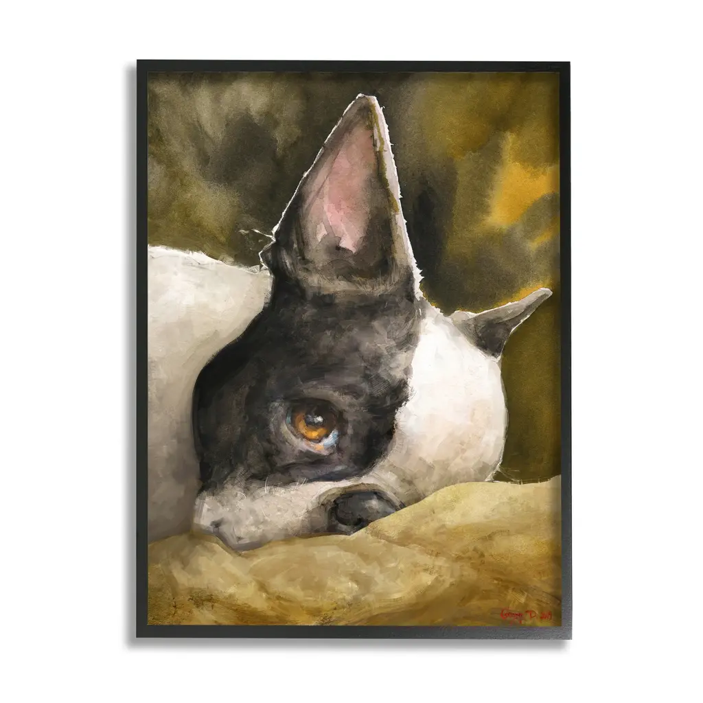 Stupell Boston Terrier Resting Dog Pet Portrait Black Brown Framed Wall Art - 16 X 20 - Black