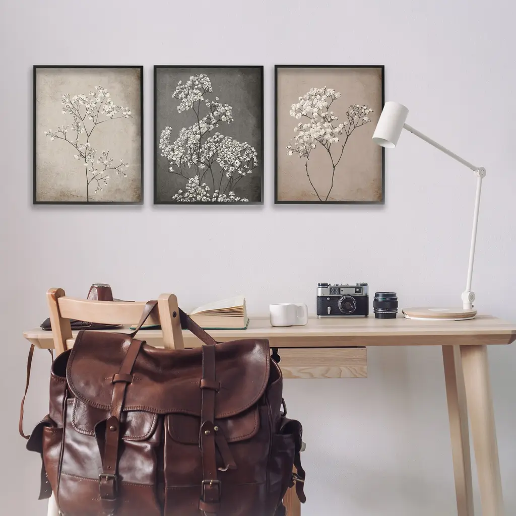 Fill any space in your home or office with our Framed Wall Art Sets. Our framed artwork is securely mounted into a 1.5-inch thick wood grain frame and ready to hang. Frames are available in three alluring styles: black, gray farmhouse and white. Stupell Wall Art is made in the USA.Features: Dimensions: 3 Piece Set, Each Panel is 11 x 1.5 x 14 FramedFramed Giclee Set Sizes Include Standard: 3pc, Each is 11 x 1.5 x 14 Large: 3pc, Each is 16 x 1.5 x 20 Oversized: 3pc, Each is 24 x 1.5 x 30Wall Art is Ready to Hang with Hardware Free Hanging. No installation required. For Easy Set Up Lean or Layer Artwork on Shelf or Against Wall.Curated Wall Art Sets make it easy for you complete the theme for any room. Our giclée prints are carefully mounted on a durable MDF backing, and then perfectly finished in a 1.5 inch thick woodgrain frame. Mounted frame colors include black, gray farmhouse and white. Made In USA.Artwork Relates To: Plant, Botanical, Herb, Flower, FloralDesign by Ros Ruseva