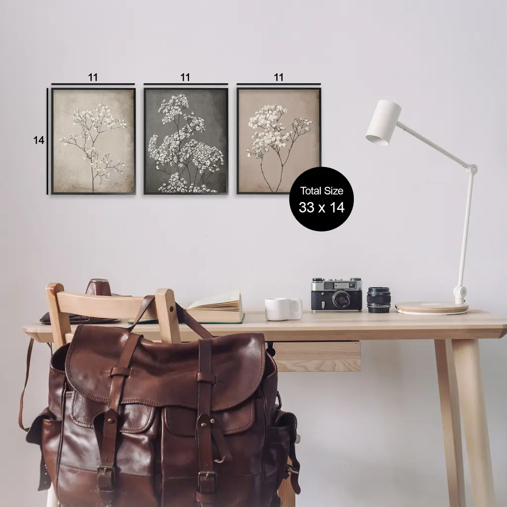 Fill any space in your home or office with our Framed Wall Art Sets. Our framed artwork is securely mounted into a 1.5-inch thick wood grain frame and ready to hang. Frames are available in three alluring styles: black, gray farmhouse and white. Stupell Wall Art is made in the USA.Features: Dimensions: 3 Piece Set, Each Panel is 11 x 1.5 x 14 FramedFramed Giclee Set Sizes Include Standard: 3pc, Each is 11 x 1.5 x 14 Large: 3pc, Each is 16 x 1.5 x 20 Oversized: 3pc, Each is 24 x 1.5 x 30Wall Art is Ready to Hang with Hardware Free Hanging. No installation required. For Easy Set Up Lean or Layer Artwork on Shelf or Against Wall.Curated Wall Art Sets make it easy for you complete the theme for any room. Our giclée prints are carefully mounted on a durable MDF backing, and then perfectly finished in a 1.5 inch thick woodgrain frame. Mounted frame colors include black, gray farmhouse and white. Made In USA.Artwork Relates To: Plant, Botanical, Herb, Flower, FloralDesign by Ros Ruseva