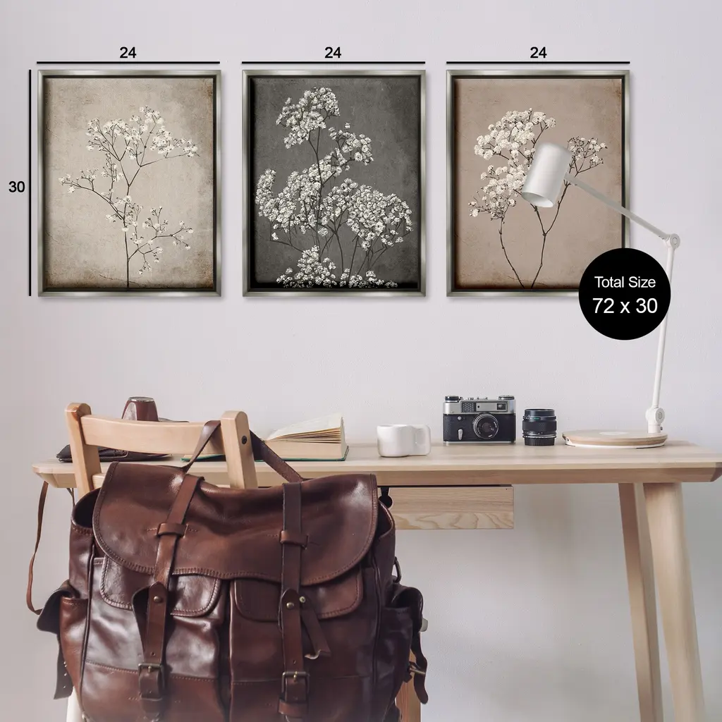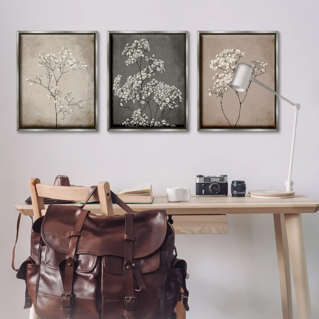 Elevate your home or office to the next level with Stupell Framed Floating Canvas Wall Art. Our premium hand-stretched canvas is mounted securely into a sturdy lightweight frame. The museum-style gap between the wrapped canvas and the box frame gives the illusion of floating artwork. Stupell Wall Art is made in the USA.Features: Dimensions: 3 Piece Set, Each Frame is 17 x 1.7 x 21Three Piece Floater Framed Canvas are available as 17x21 or 25x31 Panels. All Floater Frame Products have a 1.7" Depth.Wall Art is Ready to Hang with Hardware Free Hanging. No Installation required. For Easy Set Up Lean or Layer Artwork on Shelf or Against Wall. Artwork is Permently Fixed into the Frame.Our elevated 1.7" Thick Floating Frame is the perfect complement to our canvas style Wall Art. We use only the highest quality inks in house with industry leading printing solutions. Canvas is hand stretched over a durable wood foundation and then mounted securly into a Modern Box Frame. Made in the USA.Artwork Relates To: Plant, Botanical, Herb, Flower, Floral, Neutral, Cottage, Rustic, VintageDesign by Ros Ruseva