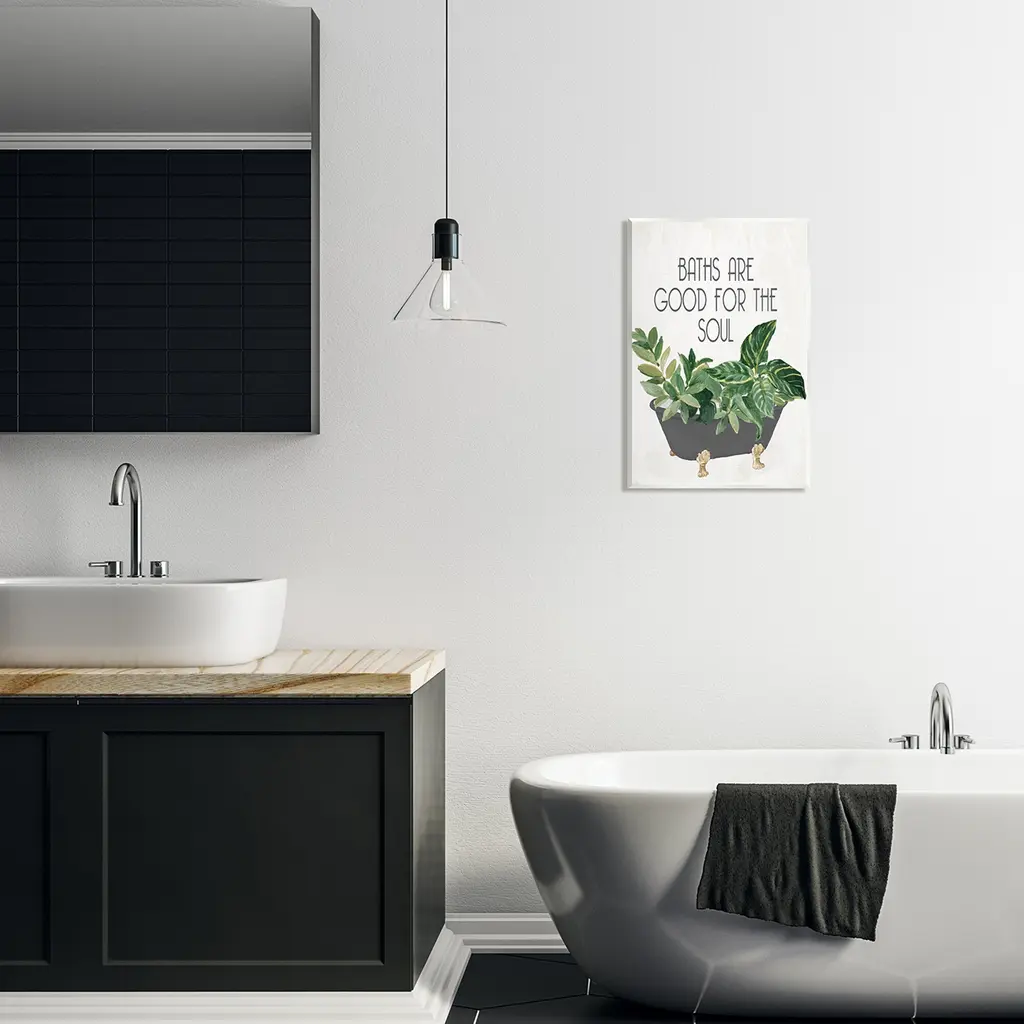 Our wall plaques start as high-quality lithograph prints mounted on durable 0.5-inch thick MDF wood. Each piece is hand finished and comes with a fresh layer of white foil on the sides to give it a crisp, clean look. Plaques arrive ready to hang without installation and come with removable plastic corners to keep them from damage in transit. Stupell Wall Art is made in the USA.Features: Dimensions: 10 x 0.5 x 15 InchesWall Plaque Sizes Include Standard: 10 x 0.5 x 15 Oversized: 13 x 0.5 x 19Wall Art is Ready to Hang with Hardware Free Hanging. No installation required. For Easy Set Up Lean or Layer Artwork on Shelf or Against Wall.All of our wall plaques start off as high quality lithograph prints that are then mounted on durable 0.5 inch thick MDF wood. Each piece is hand finished and comes with a fresh layer of foil on the sides to give it a crisp clean look. Made In USA.Artwork Relates To: Plant, Potted Plant, Leaf, Bathroom, Tub, Bathtub, Baths Are Good For The SoulDesign by Lanie Loreth