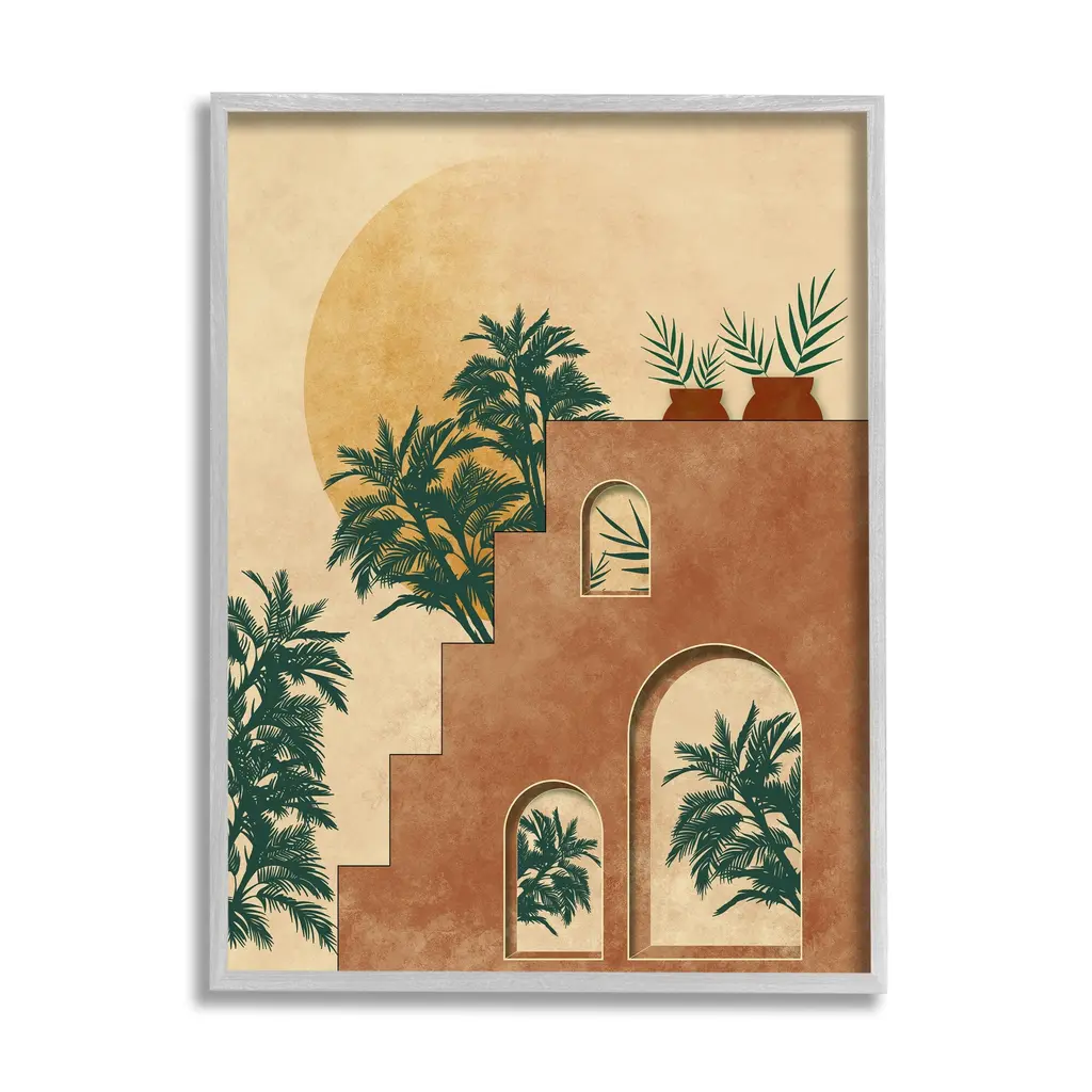 Add dimension to any room with our textured Framed Giclee Artwork. Our framed artwork is securely mounted into a 1.5-inch thick wood grain frame and ready to hang. Frames are available in three alluring styles: black, gray farmhouse and white. In addition, you should check out our oversized options if you want a statement piece. Stupell Wall Art is made in the USA.Features: Dimensions: 11 x 1.5 x 14 FramedFramed Giclee Sizes Include Standard: 11 x 1.5 x 14 Large: 16 x 1.5 x 20 Oversized: 24 x 1.5 x 30Wall Art is Ready to Hang with Hardware Free Hanging. No installation required. For Easy Set Up Lean or Layer Artwork on Shelf or Against Wall.Our giclée prints are carefully mounted on a durable MDF backing, and then perfectly finished in a 1.5 inch thick woodgrain frame. Mounted frame colors include black, gray farmhouse and white. Made In USA.Artwork Relates To: Architecture, Building, House, Villa, Plant, Tree, Palm Tree, Arch, Potted Plant, MoroccoDesign by Birch&Ink