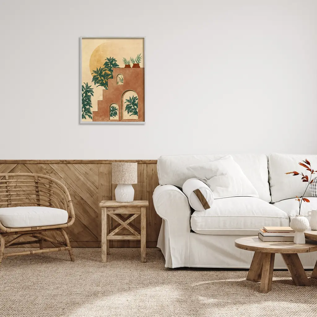 Add dimension to any room with our textured Framed Giclee Artwork. Our framed artwork is securely mounted into a 1.5-inch thick wood grain frame and ready to hang. Frames are available in three alluring styles: black, gray farmhouse and white. In addition, you should check out our oversized options if you want a statement piece. Stupell Wall Art is made in the USA.Features: Dimensions: 11 x 1.5 x 14 FramedFramed Giclee Sizes Include Standard: 11 x 1.5 x 14 Large: 16 x 1.5 x 20 Oversized: 24 x 1.5 x 30Wall Art is Ready to Hang with Hardware Free Hanging. No installation required. For Easy Set Up Lean or Layer Artwork on Shelf or Against Wall.Our giclée prints are carefully mounted on a durable MDF backing, and then perfectly finished in a 1.5 inch thick woodgrain frame. Mounted frame colors include black, gray farmhouse and white. Made In USA.Artwork Relates To: Architecture, Building, House, Villa, Plant, Tree, Palm Tree, Arch, Potted Plant, MoroccoDesign by Birch&Ink