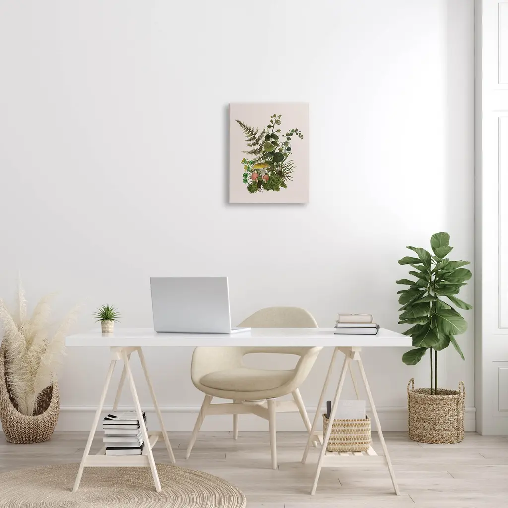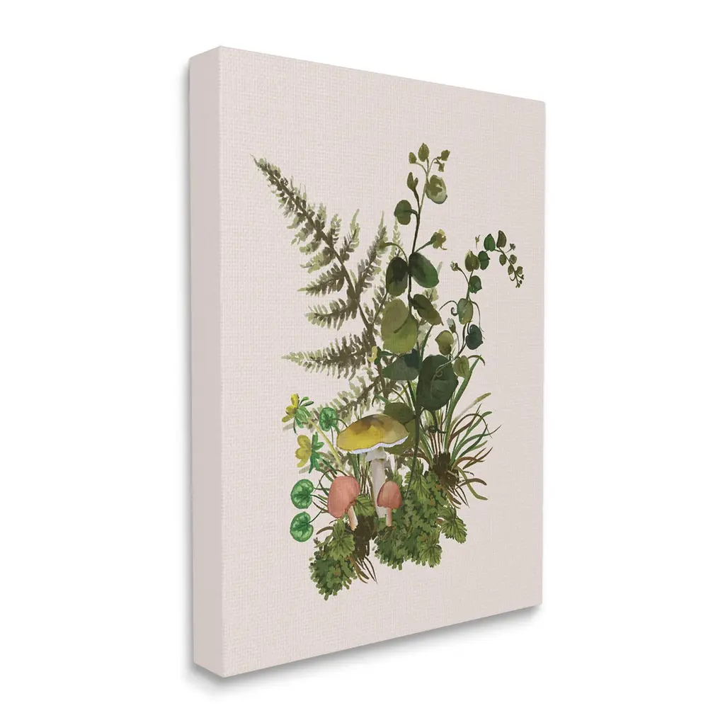 Proudly made in the USA, Our stretched canvas is created with the highest standards. We use only the highest quality inks and canvas on our in house Mimaki printers, and then hand cut and stretch each piece over a 1.5 inch thick wooden frame for hanging. The art comes ready to hang with no installation required.Features: Dimensions: 16 x 1.5 x 20 InchesStretched Canvas Sizes Include Standard: 16 x 1.5 x 20 Large: 20 x 1.5 x 30 X-Large: 30 x 1.5 x 40 Oversized: 36 x 1.5 x 48Wall Art is Ready to Hang - No Installation or Hardware Needed. For Easy Set Up Lean or Layer Artwork on Shelf or Against Wall.Our stretched canvas is created with the highest standards. We use only the highest quality inks and canvas on our in house Mimaki printers, and then hand cut and stretch each piece over a 1.5 inch thick wooden frame for hanging. Made In USA.Artwork Relates To: Plant, Fern, Flower, Fungus, Leaf, Floral, Herb, Forest, Woodland, MushroomDesign by House of Rose
