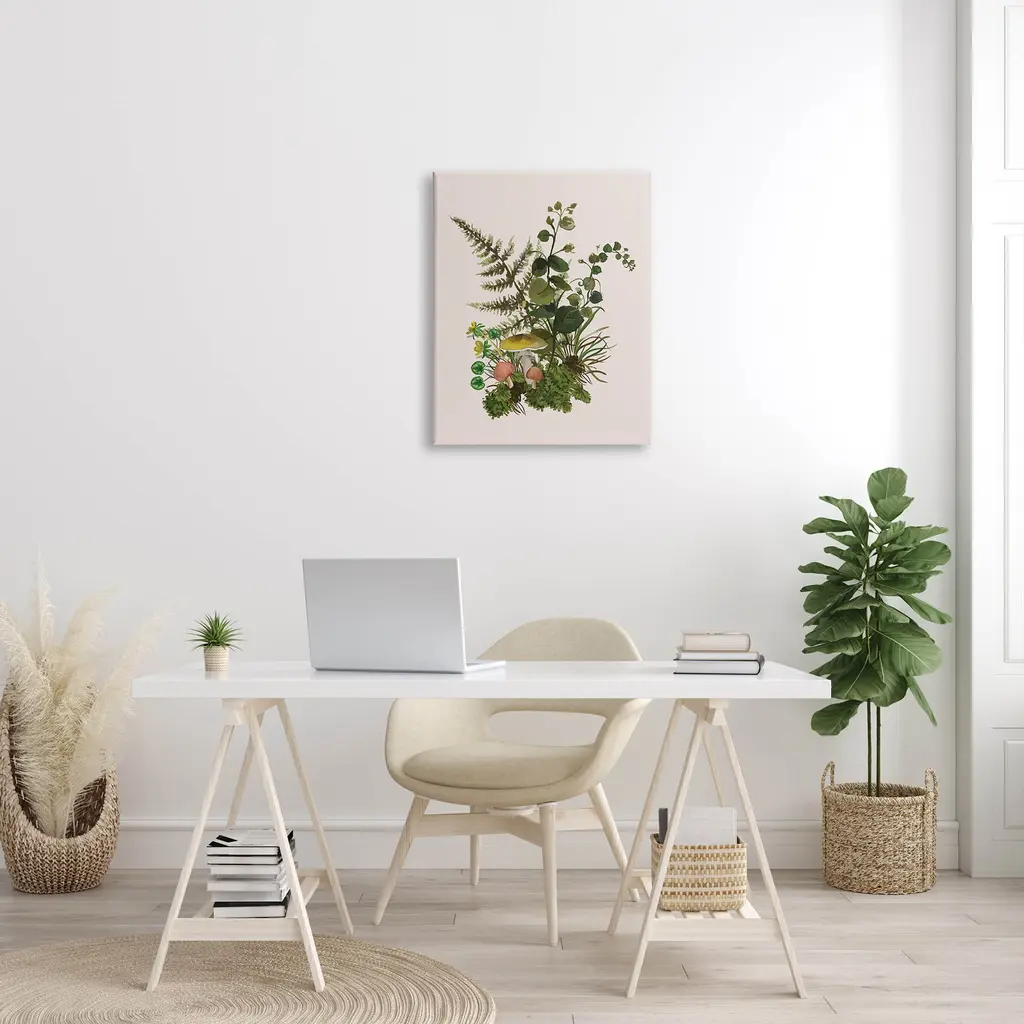 Proudly made in the USA, Our stretched canvas is created with the highest standards. We use only the highest quality inks and canvas on our in house Mimaki printers, and then hand cut and stretch each piece over a 1.5 inch thick wooden frame for hanging. The art comes ready to hang with no installation required.Features: Dimensions: 16 x 1.5 x 20 InchesStretched Canvas Sizes Include Standard: 16 x 1.5 x 20 Large: 20 x 1.5 x 30 X-Large: 30 x 1.5 x 40 Oversized: 36 x 1.5 x 48Wall Art is Ready to Hang - No Installation or Hardware Needed. For Easy Set Up Lean or Layer Artwork on Shelf or Against Wall.Our stretched canvas is created with the highest standards. We use only the highest quality inks and canvas on our in house Mimaki printers, and then hand cut and stretch each piece over a 1.5 inch thick wooden frame for hanging. Made In USA.Artwork Relates To: Plant, Fern, Flower, Fungus, Leaf, Floral, Herb, Forest, Woodland, MushroomDesign by House of Rose