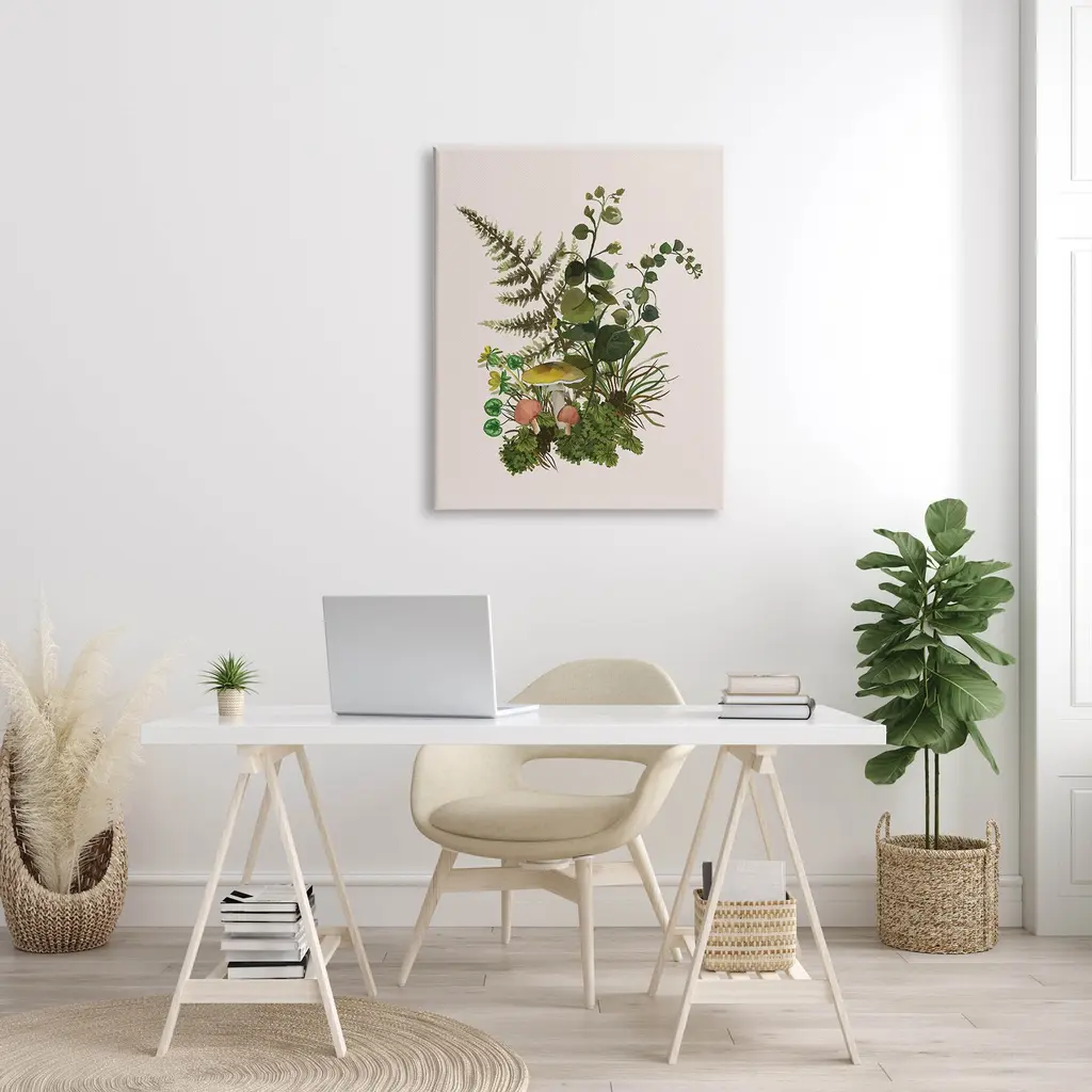 Proudly made in the USA, Our stretched canvas is created with the highest standards. We use only the highest quality inks and canvas on our in house Mimaki printers, and then hand cut and stretch each piece over a 1.5 inch thick wooden frame for hanging. The art comes ready to hang with no installation required.Features: Dimensions: 16 x 1.5 x 20 InchesStretched Canvas Sizes Include Standard: 16 x 1.5 x 20 Large: 20 x 1.5 x 30 X-Large: 30 x 1.5 x 40 Oversized: 36 x 1.5 x 48Wall Art is Ready to Hang - No Installation or Hardware Needed. For Easy Set Up Lean or Layer Artwork on Shelf or Against Wall.Our stretched canvas is created with the highest standards. We use only the highest quality inks and canvas on our in house Mimaki printers, and then hand cut and stretch each piece over a 1.5 inch thick wooden frame for hanging. Made In USA.Artwork Relates To: Plant, Fern, Flower, Fungus, Leaf, Floral, Herb, Forest, Woodland, MushroomDesign by House of Rose