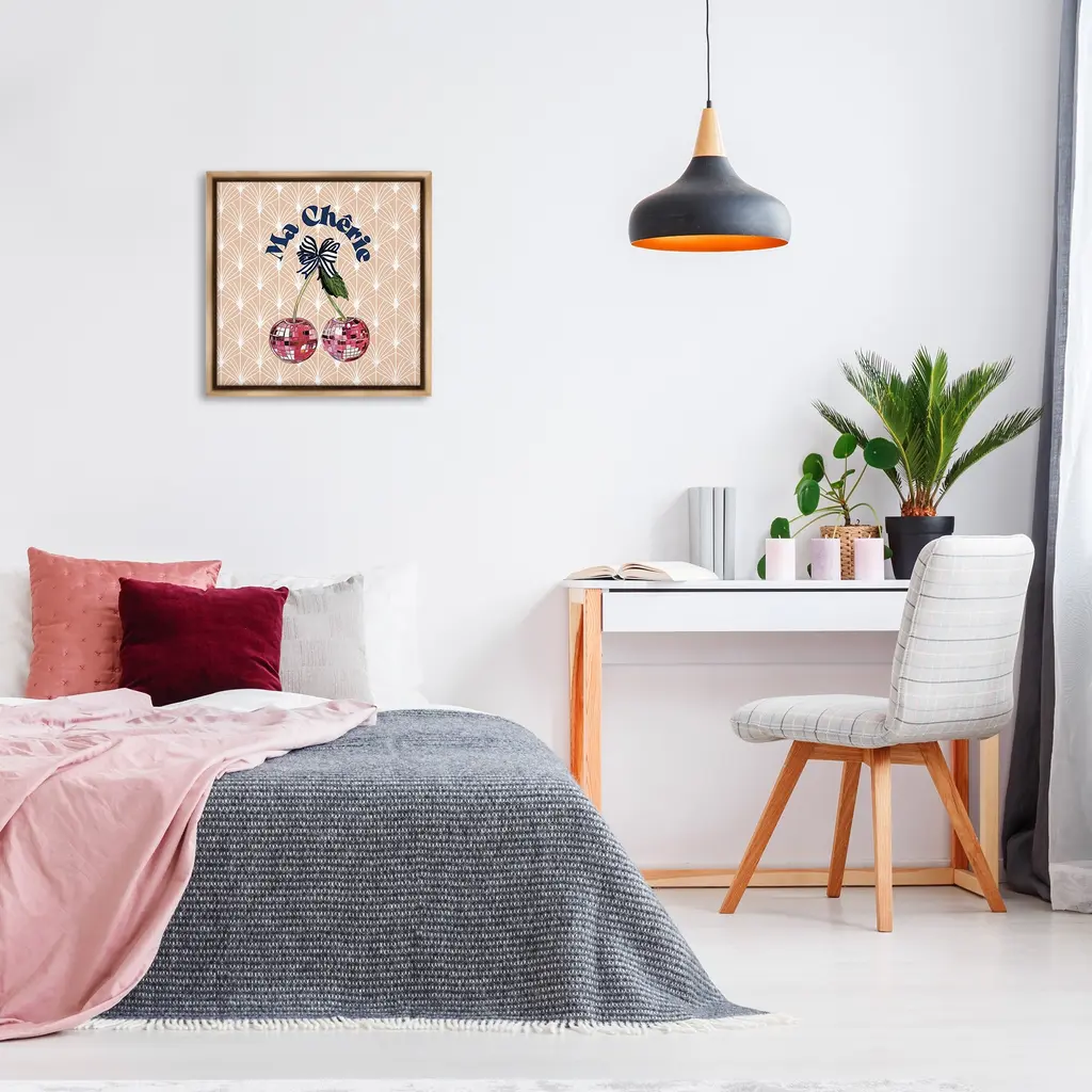 Elevate your home or office to the next level with Stupell Framed Floating Canvas Wall Art. Our premium hand-stretched canvas is mounted securely into a sturdy lightweight frame. The museum-style gap between the wrapped canvas and the box frame gives the illusion of floating artwork. Stupell Wall Art is made in the USA.Features: Dimensions: 18 x 1.7 x 18 Frame, 17 x 1.5 x 17 Canvas ArtFloating Frame Canvas Products are available in sizes 18"x18" and 25"x25". All Floating Frame Canvas Products have a 1.7" Depth.Wall Art is Ready to Hang with Hardware Free Hanging. No Installation required. For Easy Set Up Lean or Layer Artwork on Shelf or Against Wall. Artwork is Permently Fixed into the Frame.Our elevated 1.7" Thick Floating Frame is the perfect complement to our canvas style Wall Art. We use only the highest quality inks in house with industry leading printing solutions. Canvas is hand stretched over a durable wood foundation and then mounted securly into a Modern Box Frame. Made in the USA.Artwork Relates To: Dance, Music, Disco, Pattern, Fruit, Cherry, Geometric, GlamDesign by Amelia Noyes