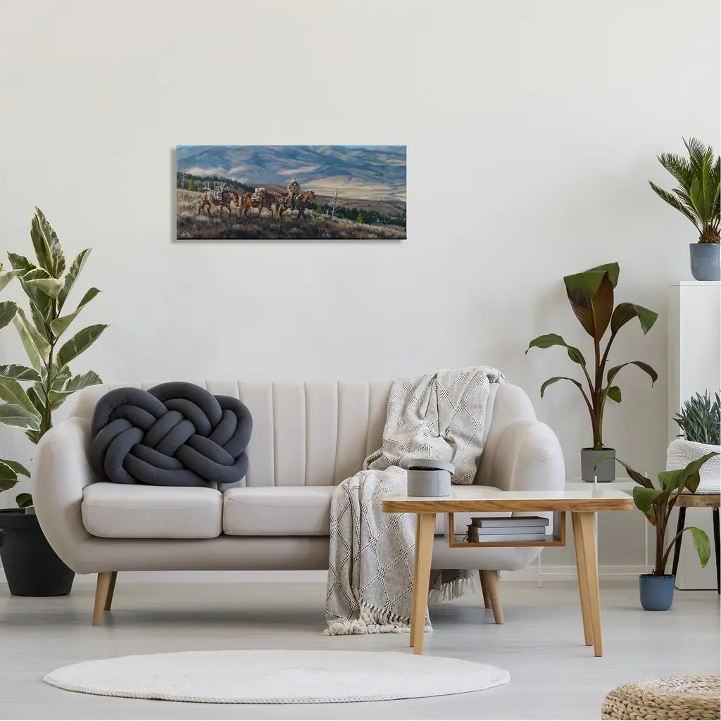 We create our stretched canvas to the highest standards. Using only the highest quality inks and canvas on Mimaki printers, we hand-cut and stretch each piece over a 1.5-inch thick wooden frame for hanging. As a result, the art comes ready to hang on the sturdy ledge with no installation required. Stupell Wall Art is made in the USA.Features: Dimensions: 24 x 1.5 x 10 InchesStretched Canvas Sizes Include Standard: 24 x 1.5 x 10 Large: 30 x 1.5 x 13 X-Large: 40 x 1.5 x 17 Oversized: 48 x 1.5 x 20Wall Art is Ready to Hang - No Installation or Hardware Needed. For Easy Set Up Lean or Layer Artwork on Shelf or Against Wall.Our stretched canvas is created with the highest standards. We use only the highest quality inks and canvas on our in house Mimaki printers, and then hand cut and stretch each piece over a 1.5 inch thick wooden frame for hanging. Made In USA.Artwork Relates To: Nature, Outdoors, Wilderness, Painting, Animal, Horse, Mammal, Horseback Riding, Water, Mountain, Valley, EquestrianDesign by David Graham