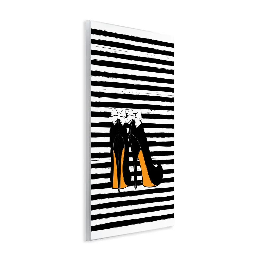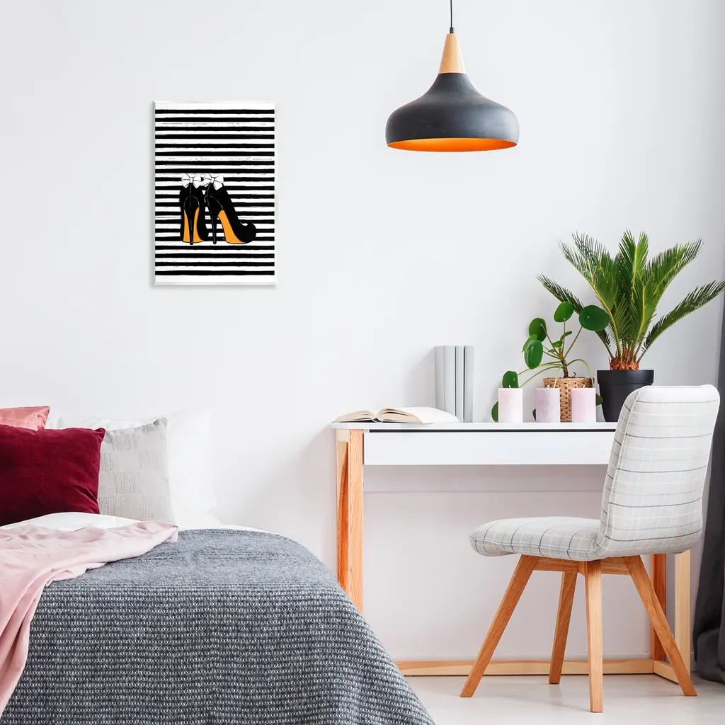 Our wall plaques start as high-quality lithograph prints mounted on durable 0.5-inch thick MDF wood. Each piece is hand finished and comes with a fresh layer of white foil on the sides to give it a crisp, clean look. Plaques arrive ready to hang without installation and come with removable plastic corners to keep them from damage in transit. Stupell Wall Art is made in the USA.Features: Dimensions: 10 x 0.5 x 15 InchesWall Plaque Product Sizes Include 10"x15" and 13"x19". All wall plaque products have a 0.5" Depth. Wall Art is Ready to Hang with Hardware Free Hanging. No installation required. For Easy Set Up Lean or Layer Artwork on Shelf or Against Wall.All of our wall plaques start off as high quality lithograph prints that are then mounted on durable 0.5 inch thick MDF wood. Each piece is hand finished and comes with a fresh layer of foil on the sides to give it a crisp clean look. Made In USA.Artwork Relates To: Shoes, Heels, Glam, Fashion, High Heel, Pattern, StripesDesign by Martina Pavlova