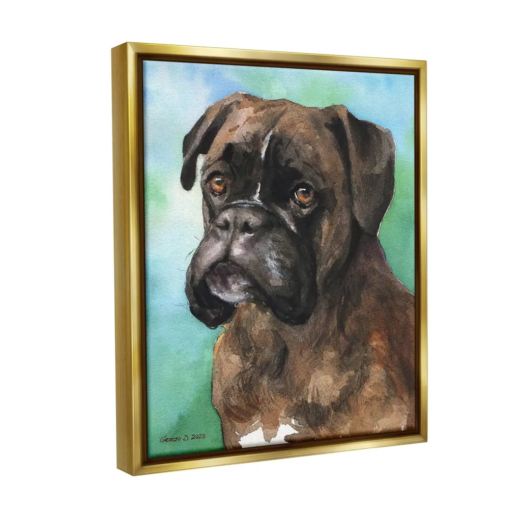 Elevate your home or office to the next level with Stupell Framed Floating Canvas Wall Art. Our premium hand-stretched canvas is mounted securely into a sturdy lightweight frame. The museum-style gap between the wrapped canvas and the box frame gives the illusion of floating artwork. Stupell Wall Art is made in the USA.Features: Dimensions: 17 x 1.7 x 21 Frame, 16 x 1.5 x 20 Canvas ArtFloating Frame Canvas Products are available in sizes 17"x21" and 25"x31". All Floating Frame Canvas Products have a 1.7" Depth.Wall Art is Ready to Hang with Hardware Free Hanging. No Installation required. For Easy Set Up Lean or Layer Artwork on Shelf or Against Wall. Artwork is Permently Fixed into the Frame.Our elevated 1.7" Thick Floating Frame is the perfect complement to our canvas style Wall Art. We use only the highest quality inks in house with industry leading printing solutions. Canvas is hand stretched over a durable wood foundation and then mounted securly into a Modern Box Frame. Made in the USA.Artwork Relates To: Animal, Canine, Dog, Pet, Portrait, Painting, BoxerDesign by GeorgeDyachenkoArt