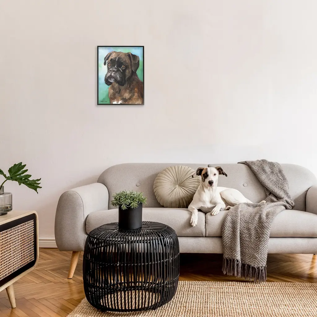 Add dimension to any room with our textured Framed Giclee Artwork. Our framed artwork is securely mounted into a 1.5-inch thick wood grain frame and ready to hang. Frames are available in three alluring styles: black, gray farmhouse and white. In addition, you should check out our oversized options if you want a statement piece. Stupell Wall Art is made in the USA.Features: Dimensions: 11 x 1.5 x 14 FramedFramed Giclee Products are available in the sizes 11"x14", 16"x20" or 24"x30". All Framed Giclee Products have a 1.5" Depth. Wall Art is Ready to Hang with Hardware Free Hanging. No installation required. For Easy Set Up Lean or Layer Artwork on Shelf or Against Wall.Our giclée prints are carefully mounted on a durable MDF backing, and then perfectly finished in a 1.5 inch thick woodgrain frame. Mounted frame colors include black, gray farmhouse and white. Made In USA.Artwork Relates To: Animal, Canine, Dog, Pet, Portrait, Painting, BoxerDesign by GeorgeDyachenkoArt