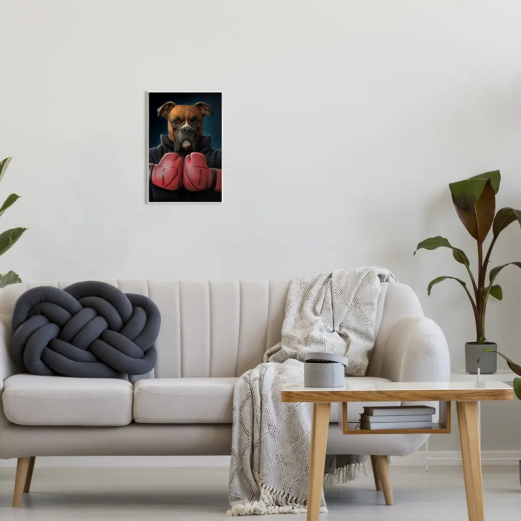 Our wall plaques start as high-quality lithograph prints mounted on durable 0.5-inch thick MDF wood. Each piece is hand finished and comes with a fresh layer of white foil on the sides to give it a crisp, clean look. Plaques arrive ready to hang without installation and come with removable plastic corners to keep them from damage in transit. Stupell Industries Wall Art is made in the USA.Features: Dimensions: 10 x 0.5 x 15 InchesWall Plaque Sizes Include Standard: 10 x 0.5 x 15 Oversized: 13 x 0.5 x 19Wall Art is Ready to Hang with Hardware Free Hanging. No installation required. For Easy Set Up Lean or Layer Artwork on Shelf or Against Wall.All of our wall plaques start off as high quality lithograph prints that are then mounted on durable 0.5 inch thick MDF wood. Each piece is hand finished and comes with a fresh layer of foil on the sides to give it a crisp clean look. Made In USA.Artwork Relates To: Animal, Boxer, Bulldog, Canine, Dog, Mammal, Pet, Boxing, Boxing Gloves, SportDesign by Vincent Hie