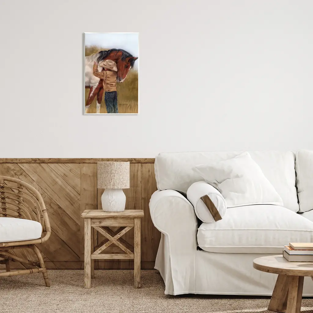 Our wall plaques start as high-quality lithograph prints mounted on durable 0.5-inch thick MDF wood. Each piece is hand finished and comes with a fresh layer of white foil on the sides to give it a crisp, clean look. Plaques arrive ready to hang without installation and come with removable plastic corners to keep them from damage in transit. Wall Art is made in the USA.Features: Dimensions: 10 x 0.5 x 15 InchesWall Plaque Sizes Include Standard: 10 x 0.5 x 15 Oversized: 13 x 0.5 x 19Wall Art is Ready to Hang with Hardware Free Hanging. No installation required. For Easy Set Up Lean or Layer Artwork on Shelf or Against Wall.All of our wall plaques start off as high quality lithograph prints that are then mounted on durable 0.5 inch thick MDF wood. Each piece is hand finished and comes with a fresh layer of foil on the sides to give it a crisp clean look. Made In USA.Artwork Relates To: Animal, Horse, Mammal, Colt Horse, Boy, Child, Person, Stallion, CowboyDesign by Victoria Schultz