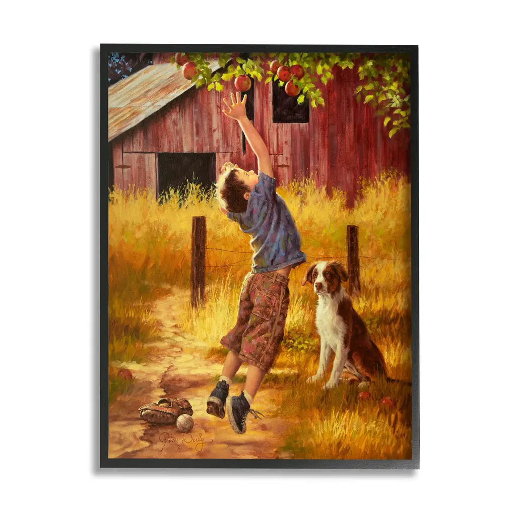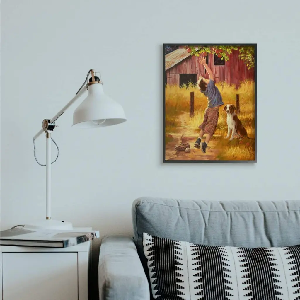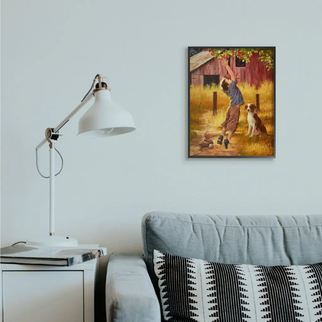 Stupell Boy Jumping For Autumn Farm Apple With Dog Framed Wall Art - 16 X 20 - Black