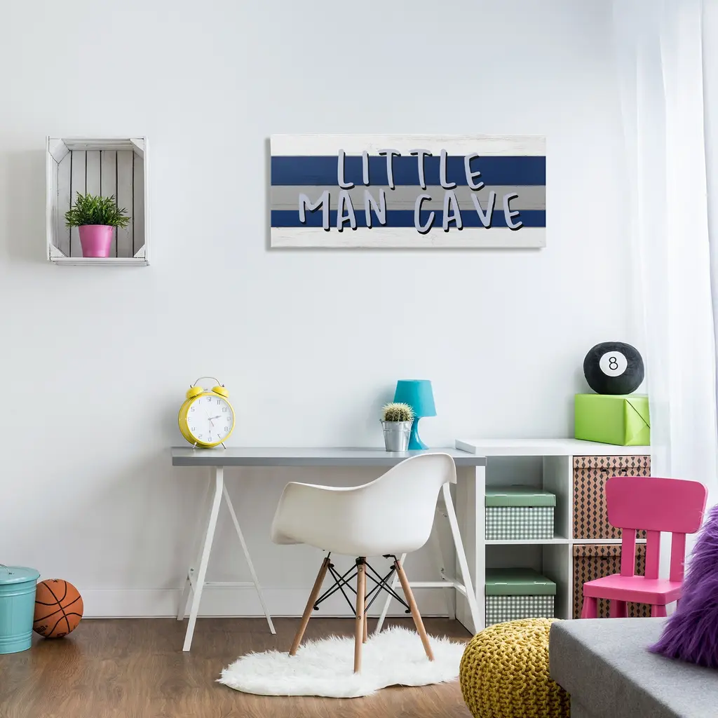 Stupell Boy's Little Man Cave Playroom Sign Blue White Canvas Wall Art - Multi-Color - 17 X 40