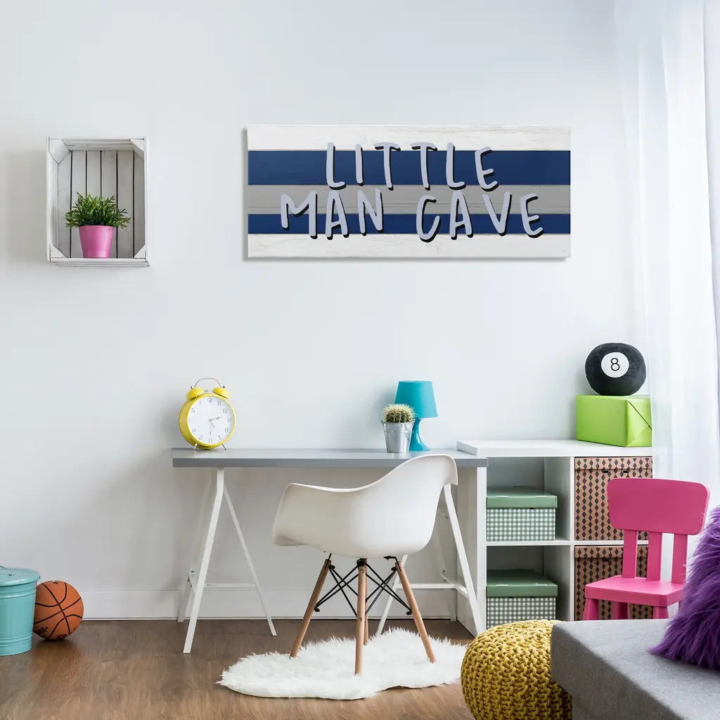 Stupell Boy's Little Man Cave Playroom Sign Blue White Canvas Wall Art - Multi-Color - 20 X 48