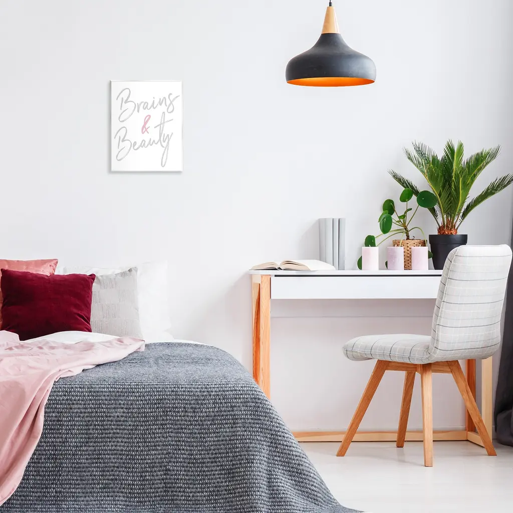 Stupell Brains & Beauty Phrase Wall Plaque Art Design By Elizabeth Medley - 11 X 14