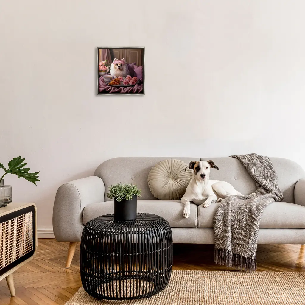 Elevate your home or office to the next level with Stupell Framed Floating Canvas Wall Art. Our premium hand-stretched canvas is mounted securely into a sturdy lightweight frame. The museum-style gap between the wrapped canvas and the box frame gives the illusion of floating artwork. Stupell Wall Art is made in the USA.Features: Dimensions: 18 x 1.7 x 18 Frame, 17 x 1.5 x 17 Canvas ArtFloating Frame Canvas Products are available in sizes 18"x18" and 25"x25". All Floating Frame Canvas Products have a 1.7" Depth.Wall Art is Ready to Hang with Hardware Free Hanging. No Installation required. For Easy Set Up Lean or Layer Artwork on Shelf or Against Wall. Artwork is Permently Fixed into the Frame.Our elevated 1.7" Thick Floating Frame is the perfect complement to our canvas style Wall Art. We use only the highest quality inks in house with industry leading printing solutions. Canvas is hand stretched over a durable wood foundation and then mounted securly into a Modern Box Frame. Made in the USA.Artwork Relates To: Cushion, Coffee, Coffee Mug, Flower, Plant, Pillow, Animal, Canine, Mammal, Dog, PetDesign by Lucia Heffernan
