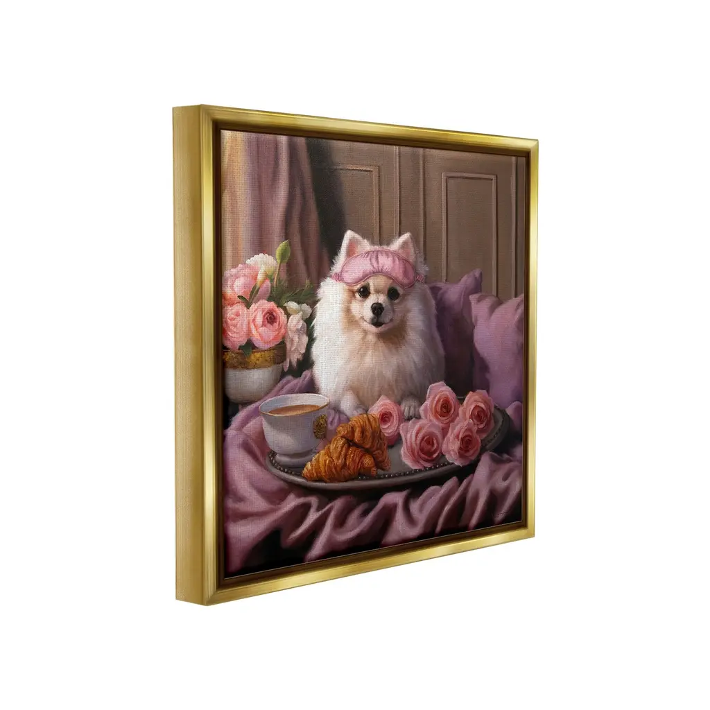 Stupell Breakfast In Bed Dog Framed Floater Canvas Wall Art Design By Lucia Heffernan - 25 X 25 - Gold