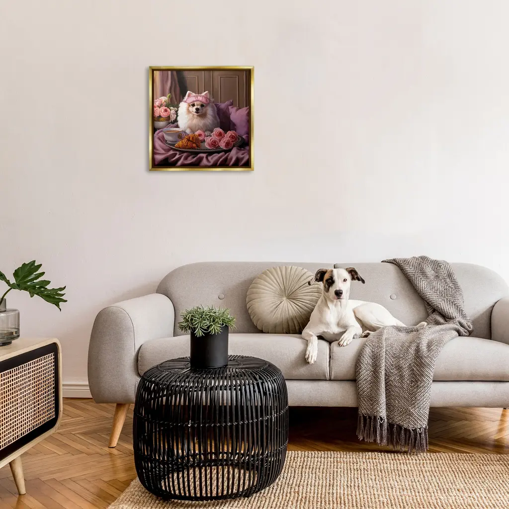 Elevate your home or office to the next level with Stupell Framed Floating Canvas Wall Art. Our premium hand-stretched canvas is mounted securely into a sturdy lightweight frame. The museum-style gap between the wrapped canvas and the box frame gives the illusion of floating artwork. Stupell Wall Art is made in the USA.Features: Dimensions: 18 x 1.7 x 18 Frame, 17 x 1.5 x 17 Canvas ArtFloating Frame Canvas Products are available in sizes 18"x18" and 25"x25". All Floating Frame Canvas Products have a 1.7" Depth.Wall Art is Ready to Hang with Hardware Free Hanging. No Installation required. For Easy Set Up Lean or Layer Artwork on Shelf or Against Wall. Artwork is Permently Fixed into the Frame.Our elevated 1.7" Thick Floating Frame is the perfect complement to our canvas style Wall Art. We use only the highest quality inks in house with industry leading printing solutions. Canvas is hand stretched over a durable wood foundation and then mounted securly into a Modern Box Frame. Made in the USA.Artwork Relates To: Cushion, Coffee, Coffee Mug, Flower, Plant, Pillow, Animal, Canine, Mammal, Dog, PetDesign by Lucia Heffernan