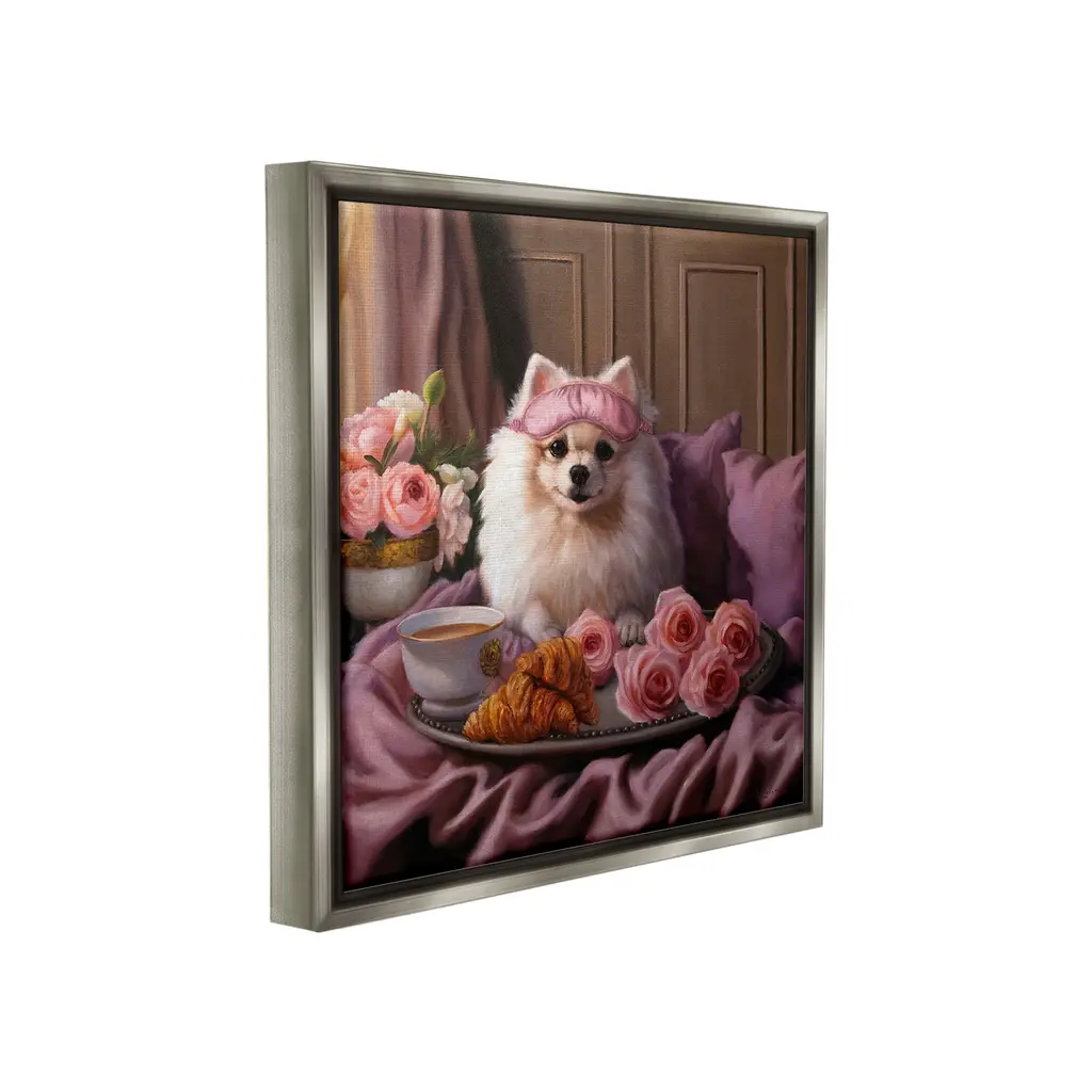 Stupell Breakfast In Bed Dog Framed Floater Canvas Wall Art Design By Lucia Heffernan - 25 X 25 - Grey