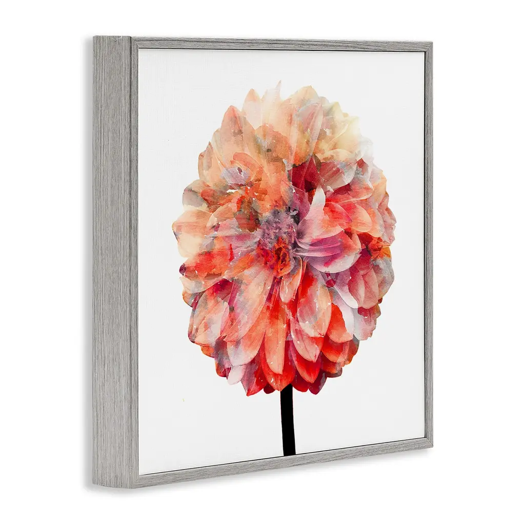 Stupell Bright Coral Watercolor Bloom Dahlia Flower Framed Art, 12 X 12, Design By Artist Kimberly Allen - Multi-Color - 17 X 17 - Grey