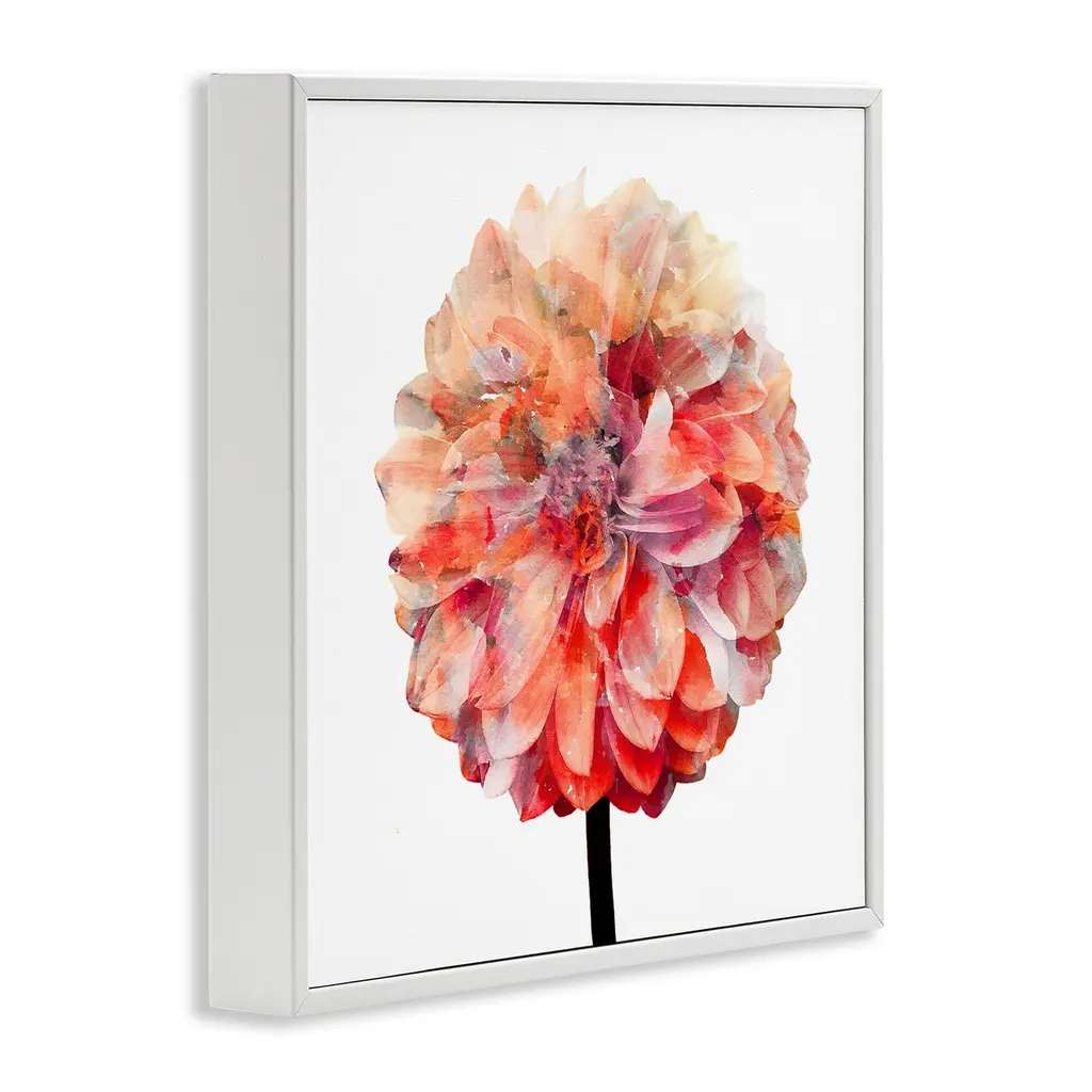 Stupell Bright Coral Watercolor Bloom Dahlia Flower Framed Art, 12 X 12, Design By Artist Kimberly Allen - Multi-Color - 17 X 17 - White