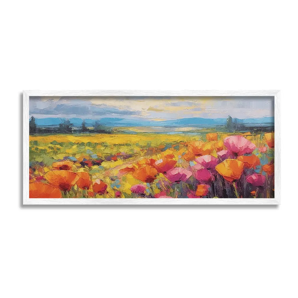 Elevate your home or office to the next level with Stupell Framed Floating Canvas Wall Art. Our premium hand-stretched canvas is mounted securely into a sturdy lightweight frame. The museum-style gap between the wrapped canvas and the box frame gives the illusion of floating artwork. Stupell Wall Art is made in the USA.Features: Dimensions: 25 x 1.7 x 11 Frame, 24 x 1.5 x 10 Canvas ArtFloating Frame Canvas Products are available in sizes 25"x11" and 31"x14". All Floating Frame Canvas Products have a 1.7" Depth.Wall Art is Ready to Hang with Hardware Free Hanging. No Installation required. For Easy Set Up Lean or Layer Artwork on Shelf or Against Wall. Artwork is Permently Fixed into the Frame.Our elevated 1.7" Thick Floating Frame is the perfect complement to our canvas style Wall Art. We use only the highest quality inks in house with industry leading printing solutions. Canvas is hand stretched over a durable wood foundation and then mounted securly into a Modern Box Frame. Made in the USA.Artwork Relates To: Flower, Plant, Painting, Poppy, Grassland, Nature, Field, Grass, Spring, Scenery, MeadowDesign by Julie DeRice