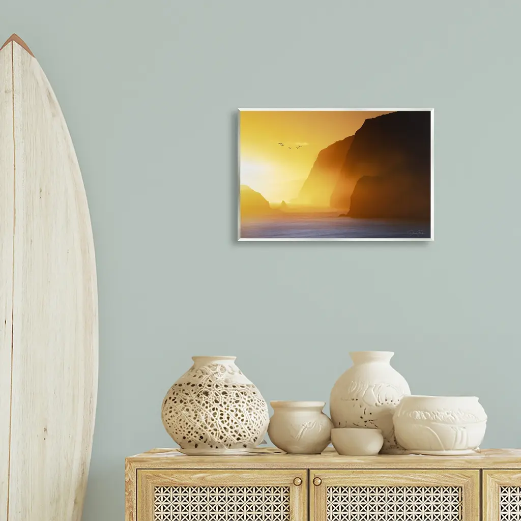 Our wall plaques start as high-quality lithograph prints mounted on durable 0.5-inch thick MDF wood. Each piece is hand finished and comes with a fresh layer of white foil on the sides to give it a crisp, clean look. Plaques arrive ready to hang without installation and come with removable plastic corners to keep them from damage in transit. Stupell Wall Art is made in the USA.Features: Dimensions: 15 x 0.5 x 10 InchesWall Plaque Product Sizes Include 15"x10" and 19"x13". All wall plaque products have a 0.5" Depth. Wall Art is Ready to Hang with Hardware Free Hanging. No installation required. For Easy Set Up Lean or Layer Artwork on Shelf or Against Wall.All of our wall plaques start off as high quality lithograph prints that are then mounted on durable 0.5 inch thick MDF wood. Each piece is hand finished and comes with a fresh layer of foil on the sides to give it a crisp clean look. Made In USA.Artwork Relates To: Cliff, Nature, Sunlight, Sky, Water, Sunset, Sea, Scenery, Animal, Bird, Sunrise, Shoreline, Coast, SilhouetteDesign by Dennis Frates