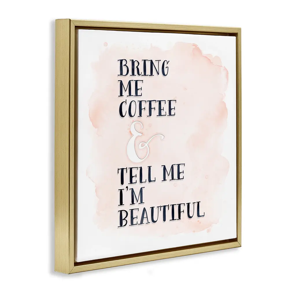 Elevate your home or office to the next level with Stupell Framed Floating Canvas Wall Art. Our premium hand-stretched canvas is mounted securely into a sturdy lightweight frame. The museum-style gap between the wrapped canvas and the box frame gives the illusion of floating artwork. Stupell Wall Art is made in the USA.Features: Dimensions: 18 x 1.7 x 18 Frame, 17 x 1.5 x 17 Canvas ArtFloating Frame Canvas Products are available in sizes 18"x18" and 25"x25". All Floating Frame Canvas Products have a 1.7" Depth.Wall Art is Ready to Hang with Hardware Free Hanging. No Installation required. For Easy Set Up Lean or Layer Artwork on Shelf or Against Wall. Artwork is Permently Fixed into the Frame.Our elevated 1.7" Thick Floating Frame is the perfect complement to our canvas style Wall Art. We use only the highest quality inks in house with industry leading printing solutions. Canvas is hand stretched over a durable wood foundation and then mounted securly into a Modern Box Frame. Made in the USA.Artwork Relates To: Phrase, Humor, Kitchen, Coffee, Casual, Pastel, Romance, FunnyDesign by Tara Moss