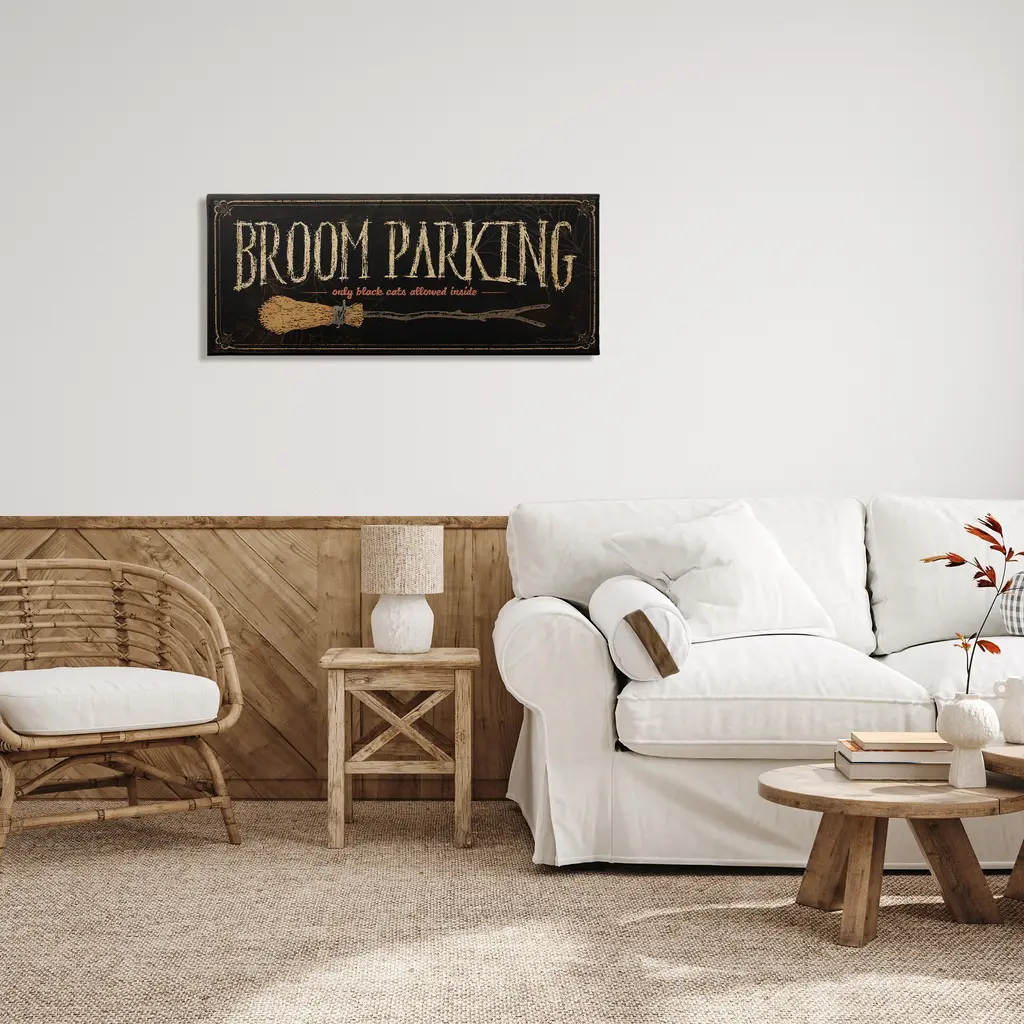 We create our stretched canvas to the highest standards. Using only the highest quality inks and canvas on Mimaki printers, we hand-cut and stretch each piece over a 1.5-inch thick wooden frame for hanging. As a result, the art comes ready to hang on the sturdy ledge with no installation required. Stupell Wall Art is made in the USA.Features: Dimensions: 24 x 1.5 x 10 InchesStretched Canvas Sizes Include Standard: 24 x 1.5 x 10 Large: 30 x 1.5 x 13 X-Large: 40 x 1.5 x 17 Oversized: 48 x 1.5 x 20Wall Art is Ready to Hang - No Installation or Hardware Needed. For Easy Set Up Lean or Layer Artwork on Shelf or Against Wall.Our stretched canvas is created with the highest standards. We use only the highest quality inks and canvas on our in house Mimaki printers, and then hand cut and stretch each piece over a 1.5 inch thick wooden frame for hanging. Made In USA.Artwork Relates To: Halloween, Witch, Phrase, Broom Parking, Only Black Cats Allowed InsideDesign by Stephanie Workman Marrott