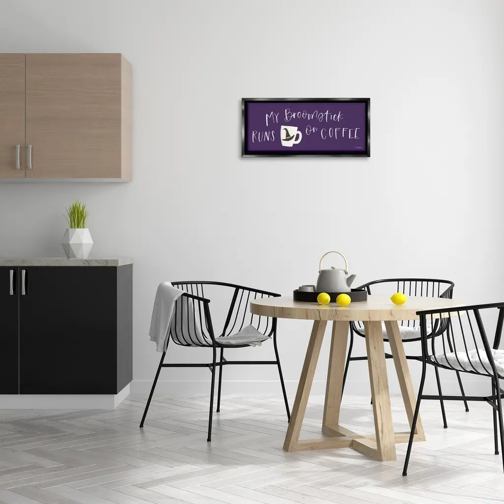 Stupell Broomstick Runs On Coffee Framed Floater Canvas Wall Art Design By Jenaya Jackson - 25 X 11 - Black