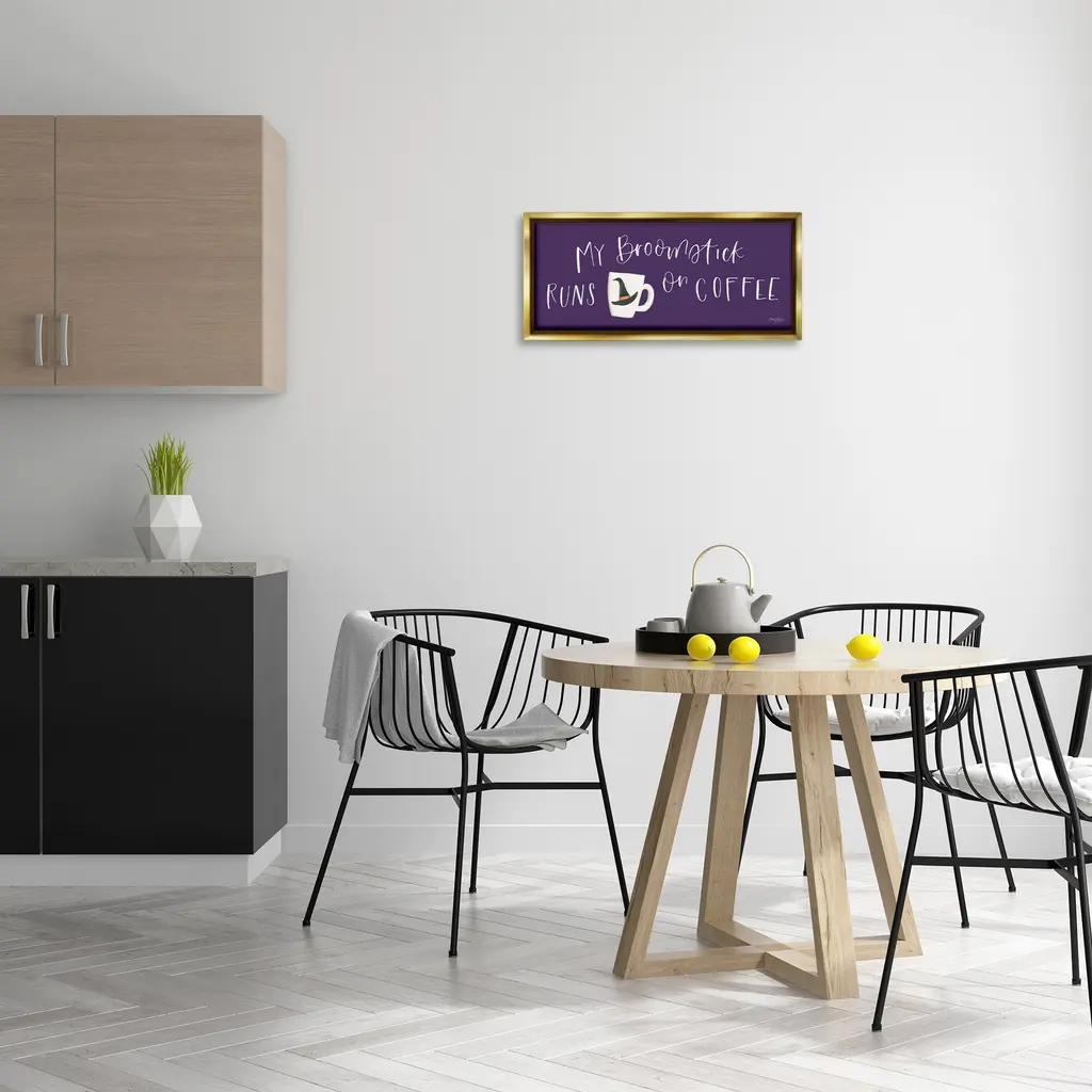 Stupell Broomstick Runs On Coffee Framed Floater Canvas Wall Art Design By Jenaya Jackson - 25 X 11 - Gold