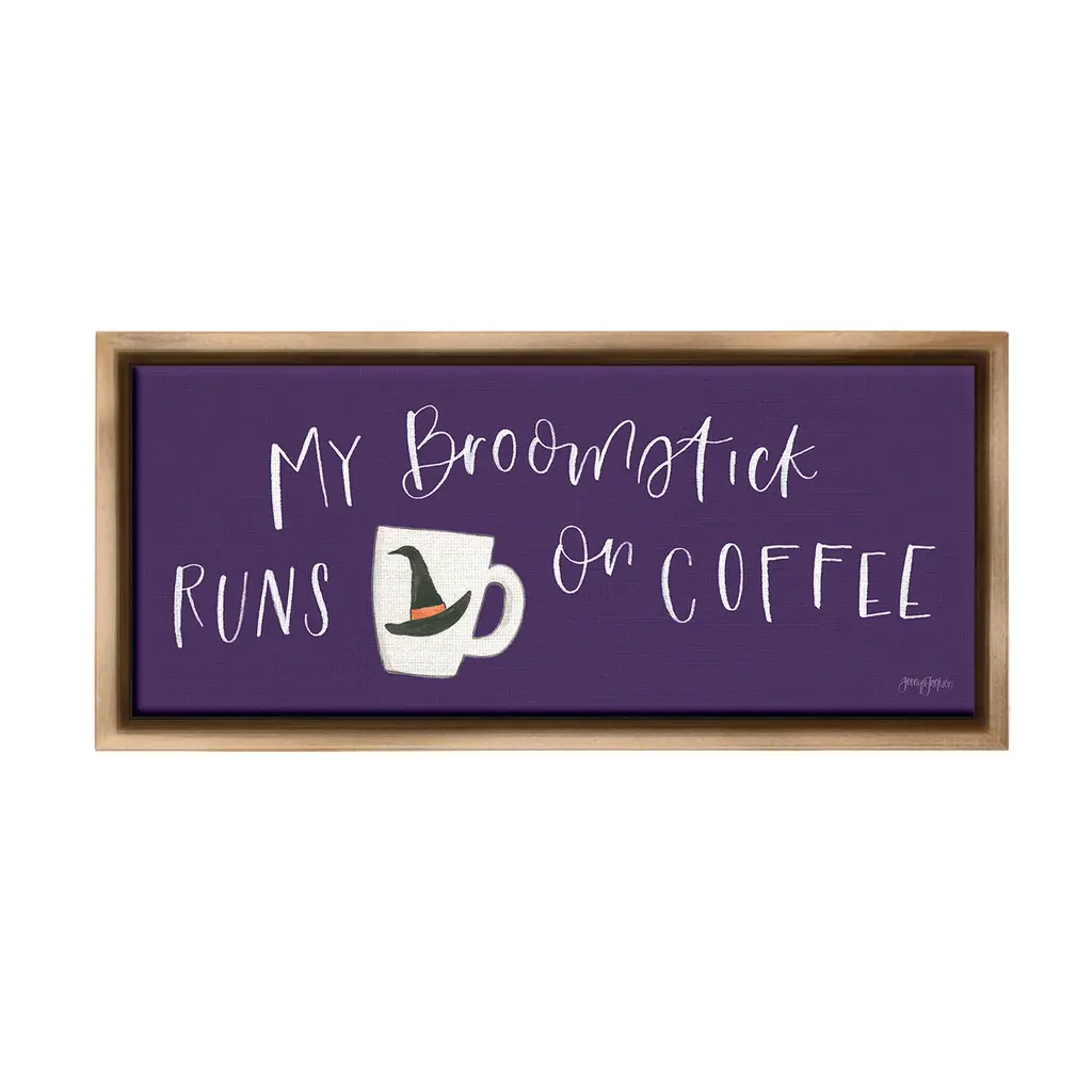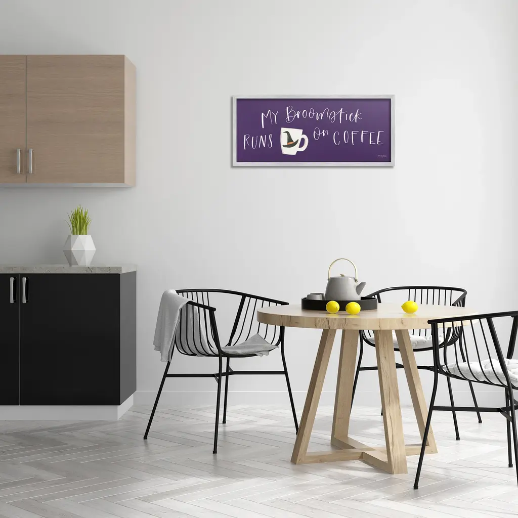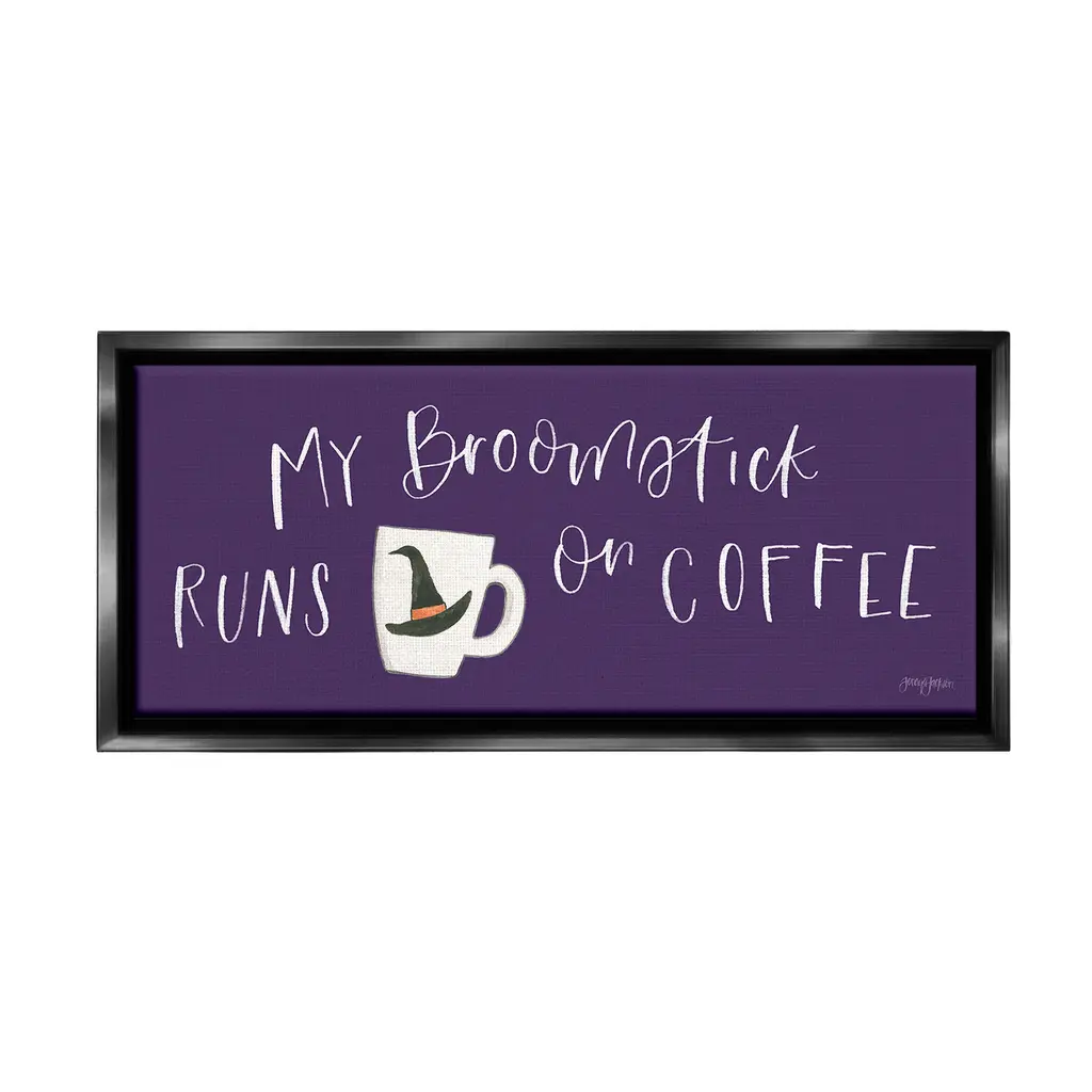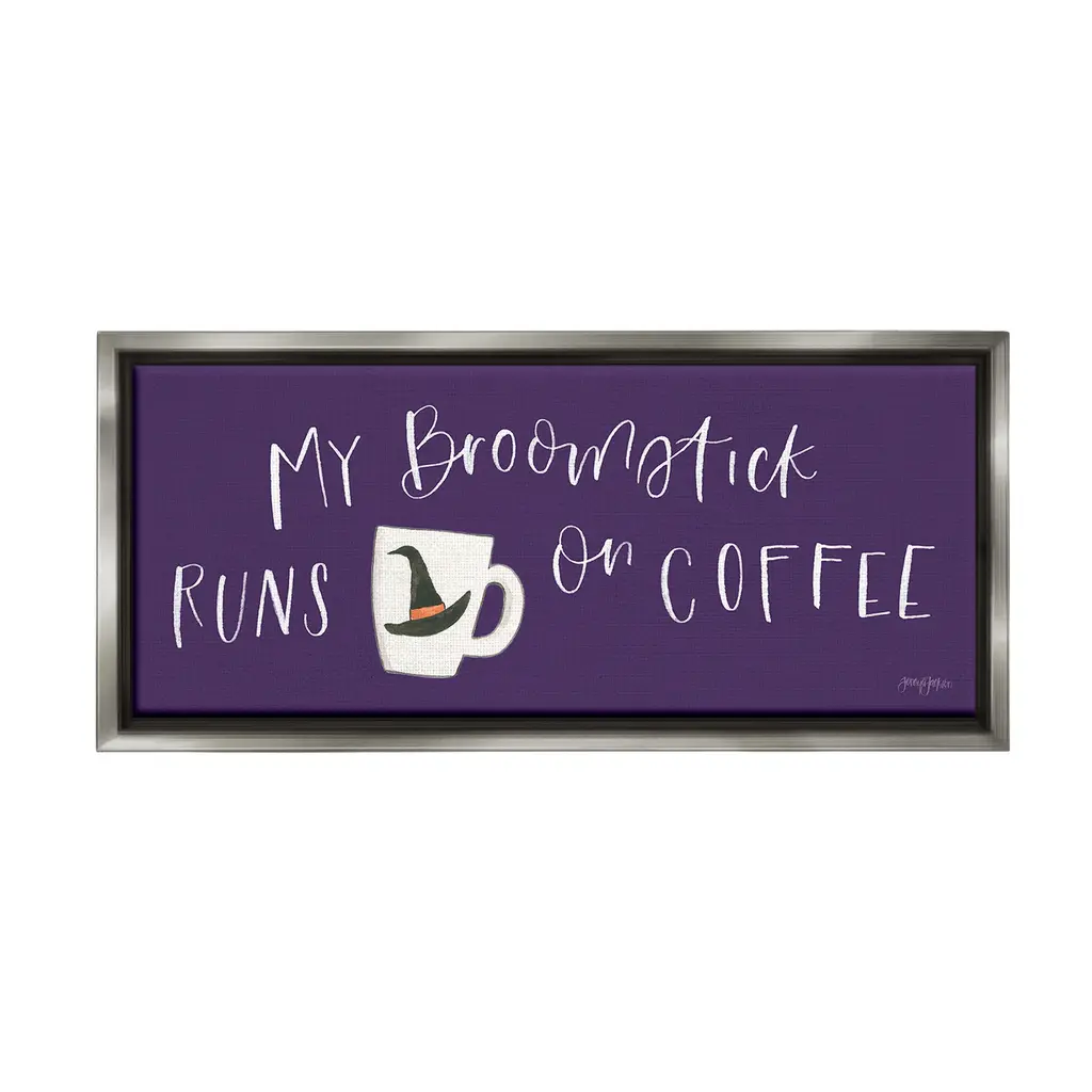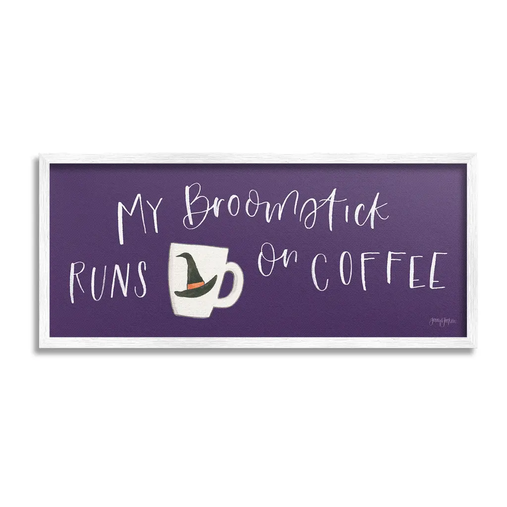 Add dimension to any room with our textured Framed Giclee Artwork. Our framed artwork is securely mounted into a 1.5-inch thick wood grain frame and ready to hang. Frames are available in three alluring styles: black, gray farmhouse and white. In addition, you should check out our oversized options if you want a statement piece. Stupell Wall Art is made in the USA.Features: Dimensions: 24 x 1.5 x 10 FramedFramed Giclee Product Sizes include 24"x10" and 30"x13". All Framed Giclee products have a 1.5" Depth.Wall Art is Ready to Hang with Hardware Free Hanging. No installation required. For Easy Set Up Lean or Layer Artwork on Shelf or Against Wall.Our giclée prints are carefully mounted on a durable MDF backing, and then perfectly finished in a 1.5 inch thick woodgrain frame. Mounted frame colors include black, gray farmhouse and white. Made In USA.Artwork Relates To: Halloween, Holiday, Autumn, Coffee, Mug, Witch, My Broomstick Runs on CoffeeDesign by Jenaya Jackson