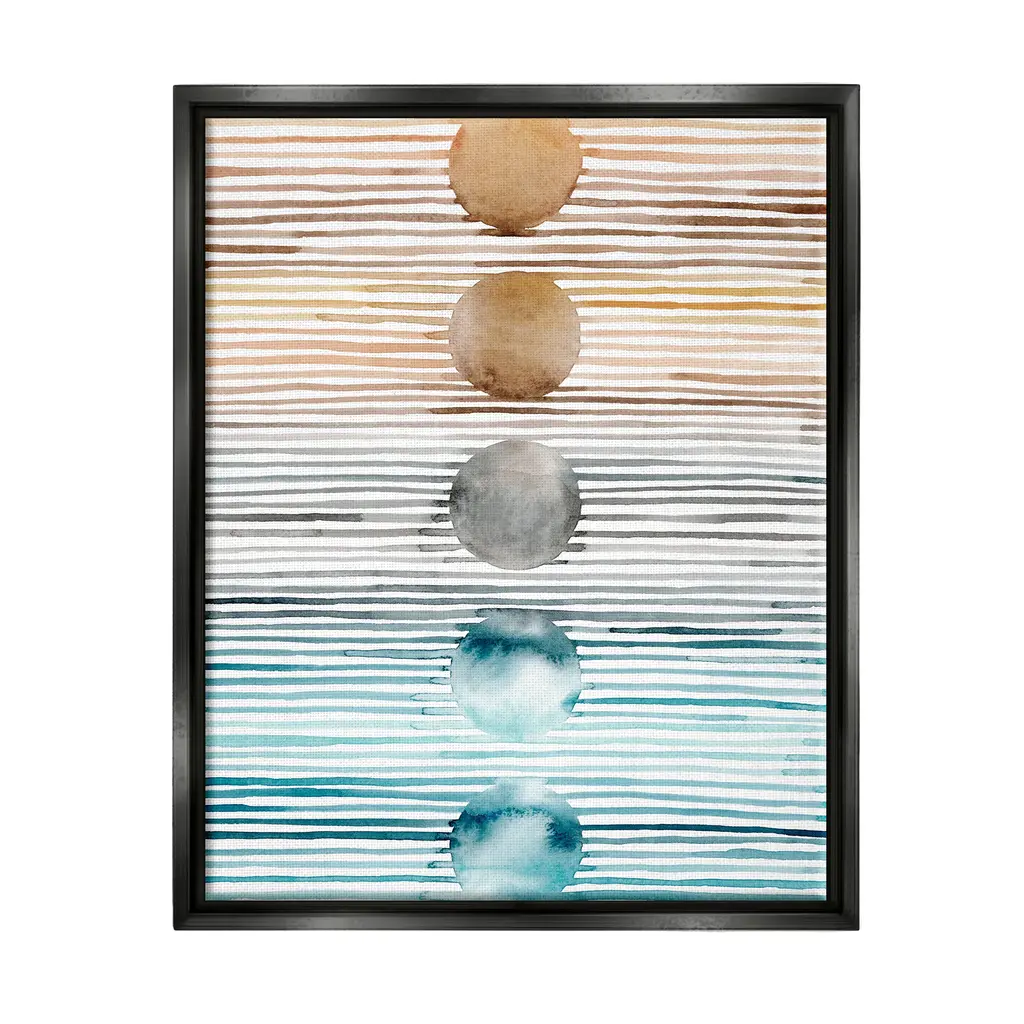 Stupell Brown & Blue Gradient Circles Framed Floater Canvas Wall Art By Grace Popp - 16 X 20 - Gold