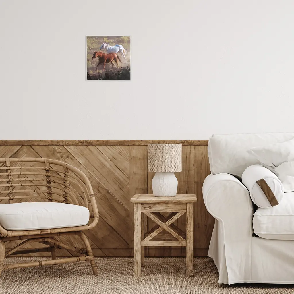 Our wall plaques start as high-quality lithograph prints mounted on durable 0.5-inch thick MDF wood. Each piece is hand finished and comes with a fresh layer of white foil on the sides to give it a crisp, clean look. Plaques arrive ready to hang without installation and come with removable plastic corners to keep them from damage in transit. Stupell Wall Art is made in the USA.Features: Dimensions: 12 x 0.5 x 12 InchesWall Art is Ready to Hang with Hardware Free Hanging. No installation required. For Easy Set Up Lean or Layer Artwork on Shelf or Against Wall.All of our wall plaques start off as high quality lithograph prints that are then mounted on durable 0.5 inch thick MDF wood. Each piece is hand finished and comes with a fresh layer of foil on the sides to give it a crisp clean look. Made In USA.Artwork Relates To: Animal, Equestrian, Horse, Mammal, Person, Stallion, Colt Horse, PaintingDesign by Nina Blue