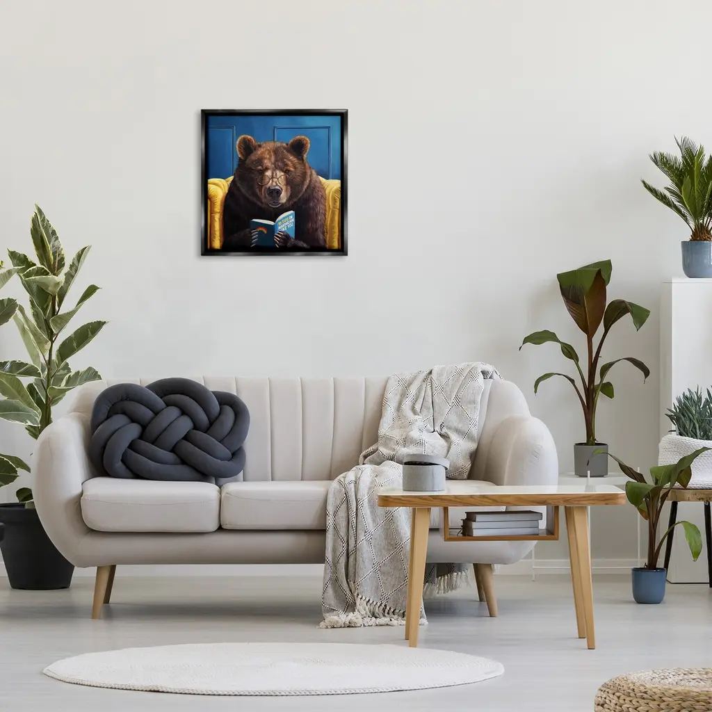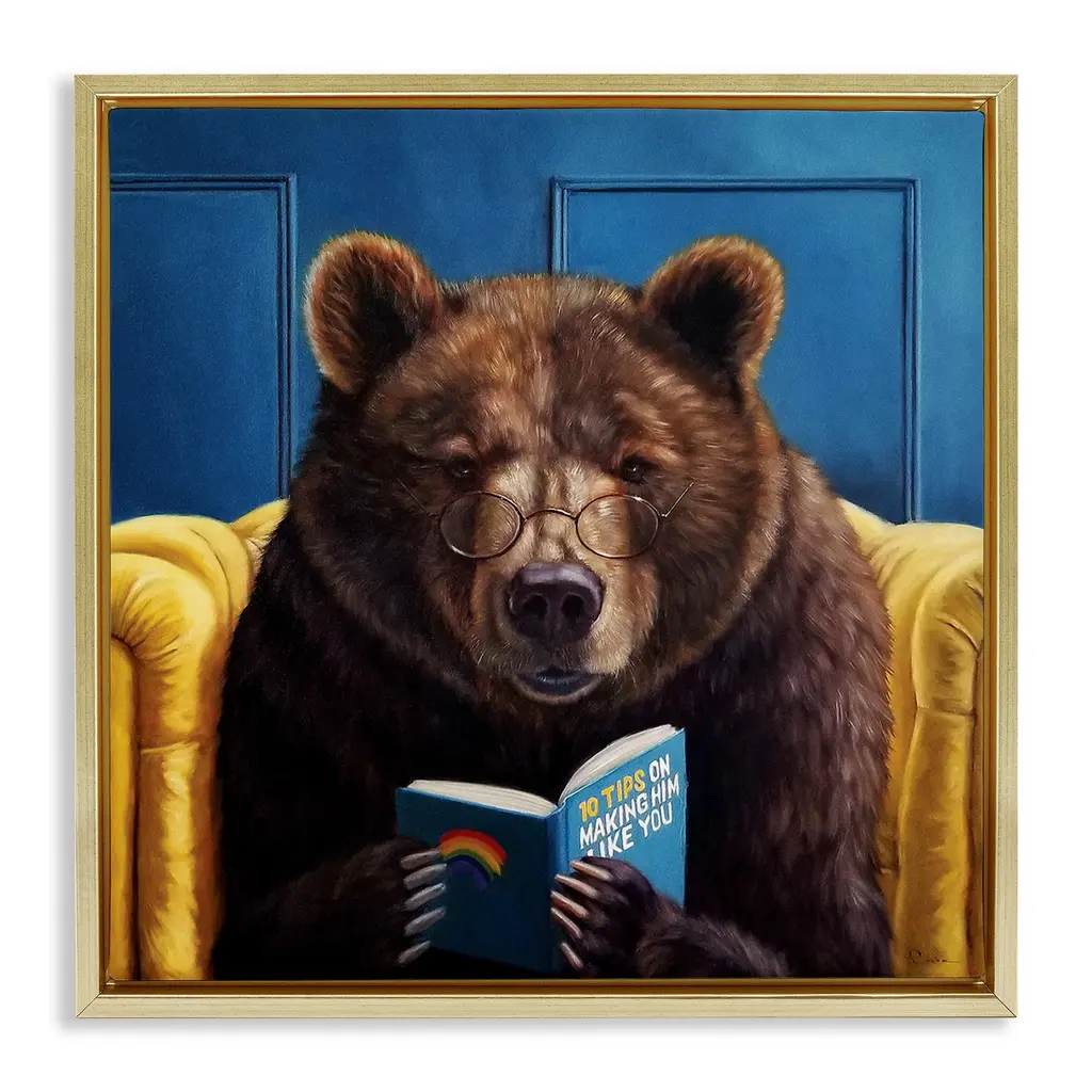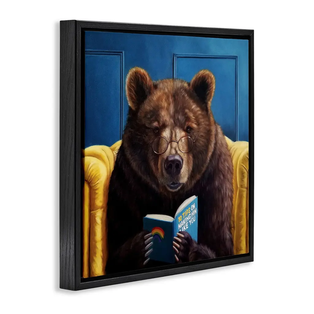 Elevate your home or office to the next level with Stupell Framed Floating Canvas Wall Art. Our premium hand-stretched canvas is mounted securely into a sturdy lightweight frame. The museum-style gap between the wrapped canvas and the box frame gives the illusion of floating artwork. Stupell Wall Art is made in the USA.Features: Dimensions: 18 x 1.7 x 18 Frame, 17 x 1.5 x 17 Canvas ArtFloating Frame Canvas Products are available in sizes 18"x18" and 25"x25". All Floating Frame Canvas Products have a 1.7" Depth.Wall Art is Ready to Hang with Hardware Free Hanging. No Installation required. For Easy Set Up Lean or Layer Artwork on Shelf or Against Wall. Artwork is Permently Fixed into the Frame.Our elevated 1.7" Thick Floating Frame is the perfect complement to our canvas style Wall Art. We use only the highest quality inks in house with industry leading printing solutions. Canvas is hand stretched over a durable wood foundation and then mounted securly into a Modern Box Frame. Made in the USA.Artwork Relates To: Animal, Reading, Book, Bear, Romance, Humor, Love, WoodlandDesign by Lucia Heffernan