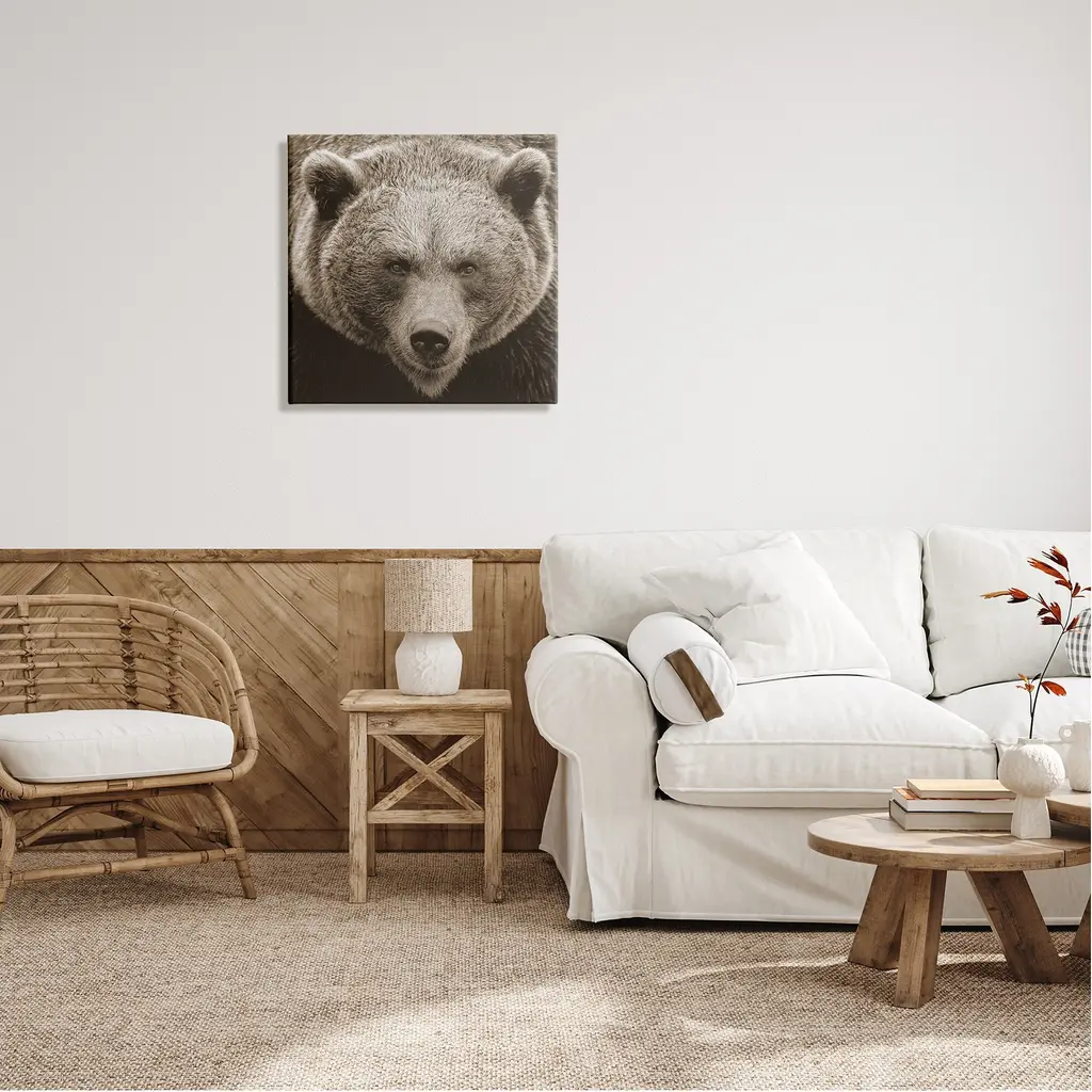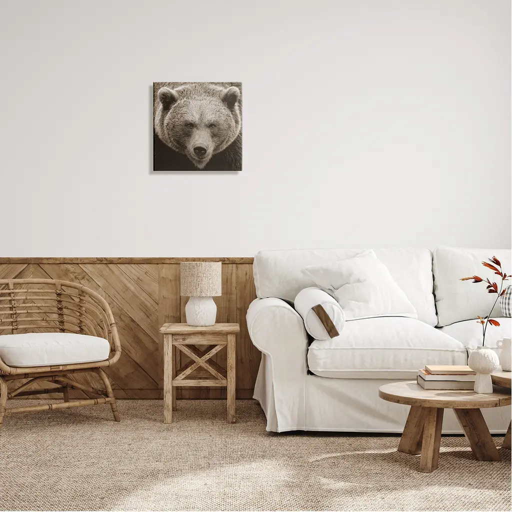 We create our stretched canvas to the highest standards. Using only the highest quality inks and canvas on Mimaki printers, we hand-cut and stretch each piece over a 1.5-inch thick wooden frame for hanging. As a result, the art comes ready to hang on the sturdy ledge with no installation required. Stupell Wall Art is made in the USA.Features: Dimensions: 17 x 1.5 x 17 InchesStretched Canvas Sizes Include Standard: 17 x 1.5 x 17 Large: 24 x 1.5 x 24 X-Large: 30 x 1.5 x 30 Oversized: 36 x 1.5 x 36Wall Art is Ready to Hang - No Installation or Hardware Needed. For Easy Set Up Lean or Layer Artwork on Shelf or Against Wall.Our stretched canvas is created with the highest standards. We use only the highest quality inks and canvas on our in house Mimaki printers, and then hand cut and stretch each piece over a 1.5 inch thick wooden frame for hanging. Made In USA.Artwork Relates To: Animal, Bear, Mammal, Wildlife, Brown Bear, PhotographyDesign by Lil' Rue