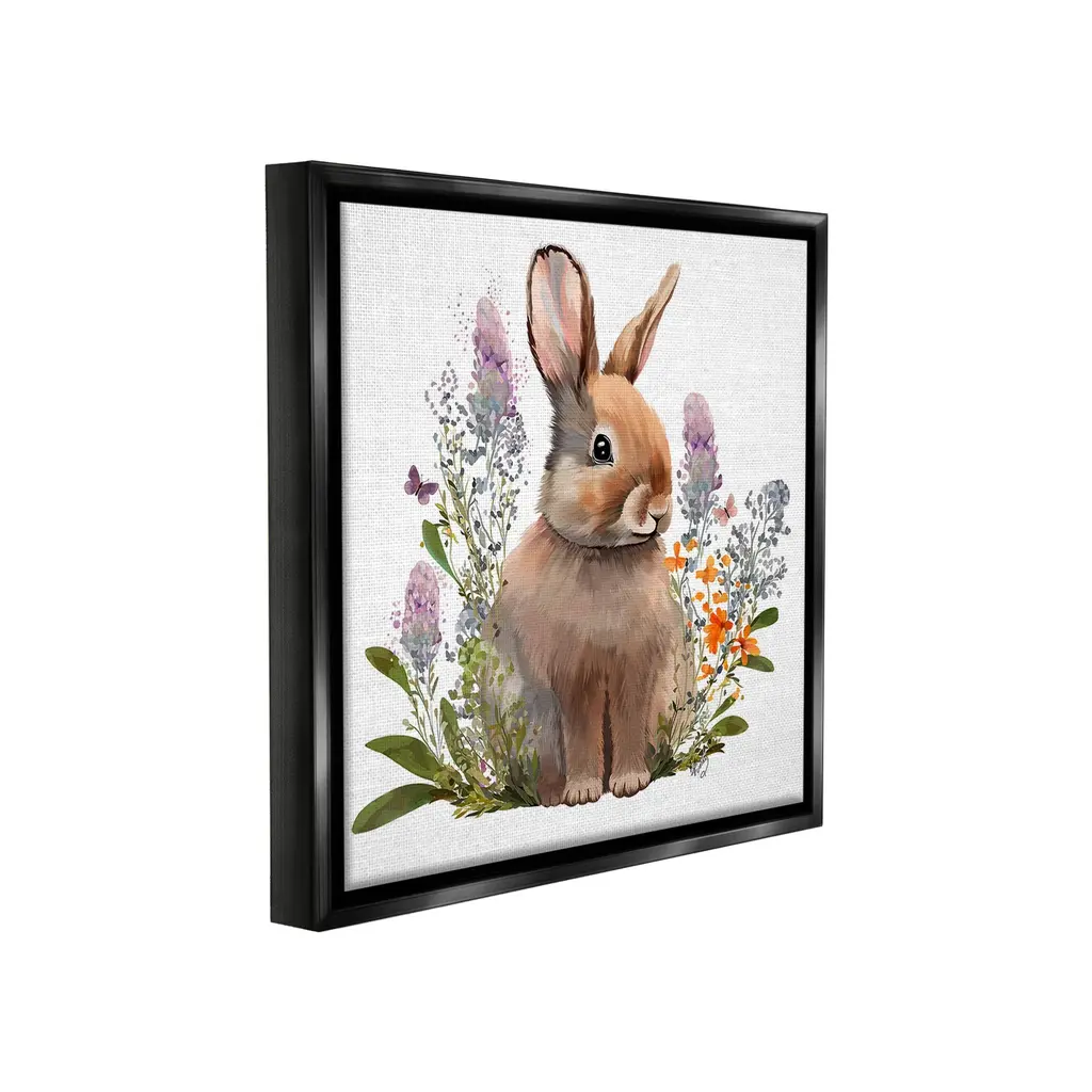 Stupell Brown Bunny With Florals Framed Floater Canvas Wall Art Design By Fab Funky - 18 X 18 - Black