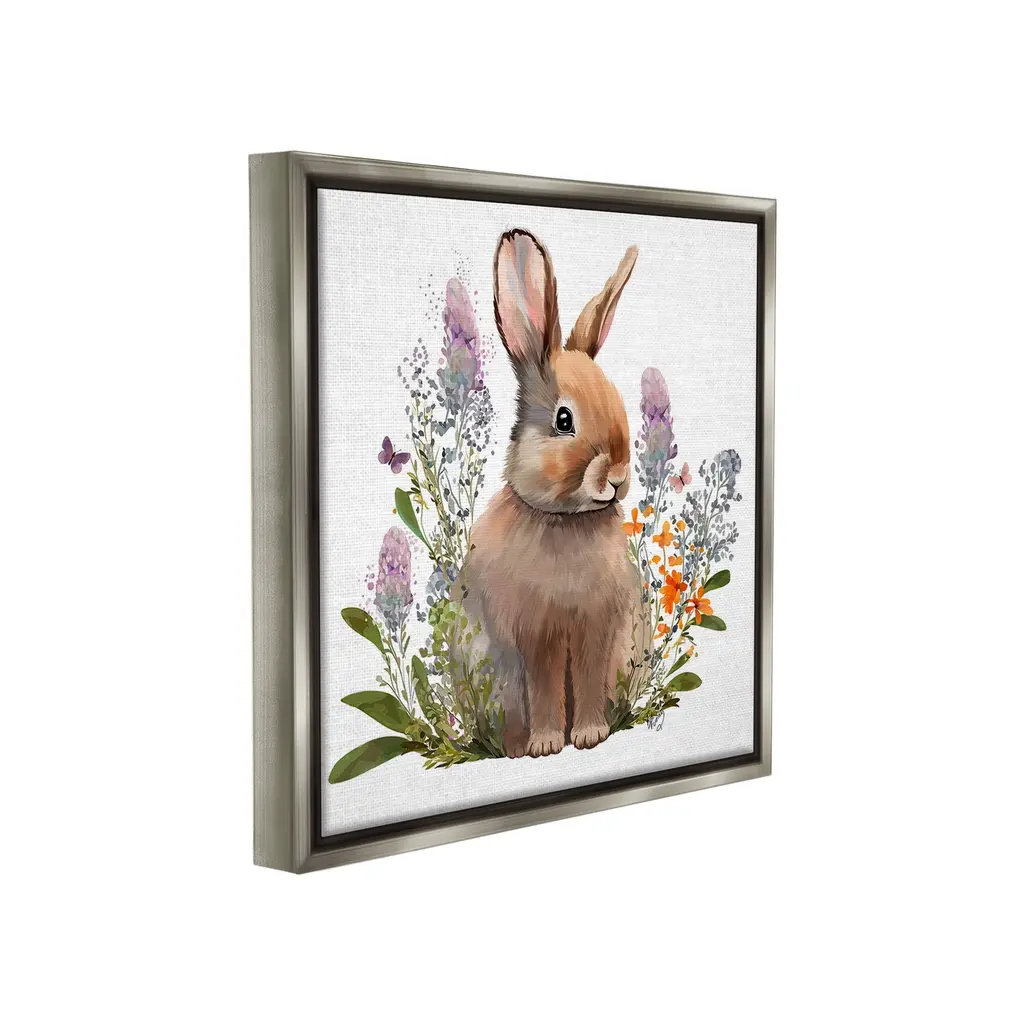 Stupell Brown Bunny With Florals Framed Floater Canvas Wall Art Design By Fab Funky - 25 X 25 - Grey