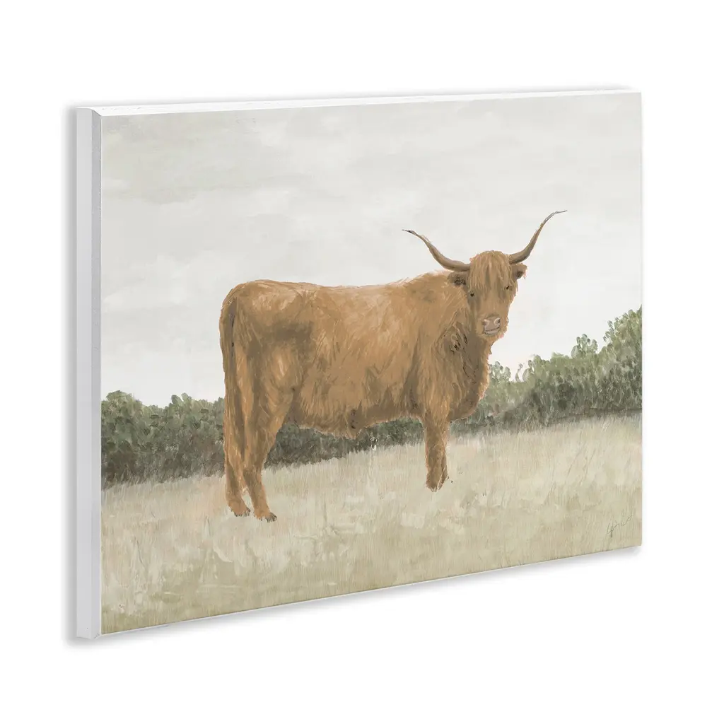Our wall plaques start as high-quality lithograph prints mounted on durable 0.5-inch thick MDF wood. Each piece is hand finished and comes with a fresh layer of white foil on the sides to give it a crisp, clean look. Plaques arrive ready to hang without installation and come with removable plastic corners to keep them from damage in transit. Stupell Wall Art is made in the USA.Features: Dimensions: 14 x 0.5 x 11 InchesWall Art is Ready to Hang with Hardware Free Hanging. No installation required. For Easy Set Up Lean or Layer Artwork on Shelf or Against Wall.All of our wall plaques start off as high quality lithograph prints that are then mounted on durable 0.5 inch thick MDF wood. Each piece is hand finished and comes with a fresh layer of foil on the sides to give it a crisp clean look. Made In USA.Artwork Relates To: Animal, Bull, Mammal, Cattle, Highland Cattle, Landscape, Country, FarmDesign by Jen Eitel