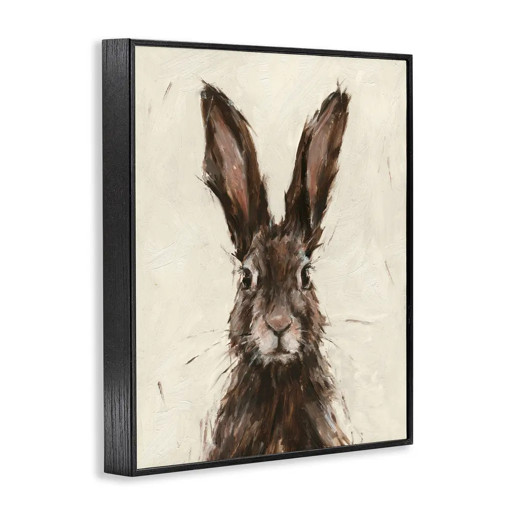 Stupell Brown European Rabbit Hare Portrait Painting Framed Giclee Texturized Art By Ethan Harper - 11 X 14 - Black