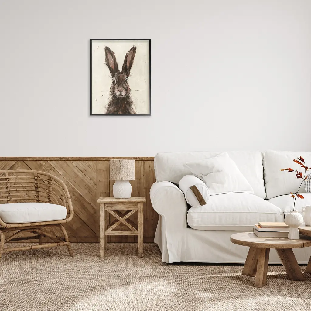 Stupell Brown European Rabbit Hare Portrait Painting Framed Giclee Texturized Art By Ethan Harper - 24 X 30 - Black