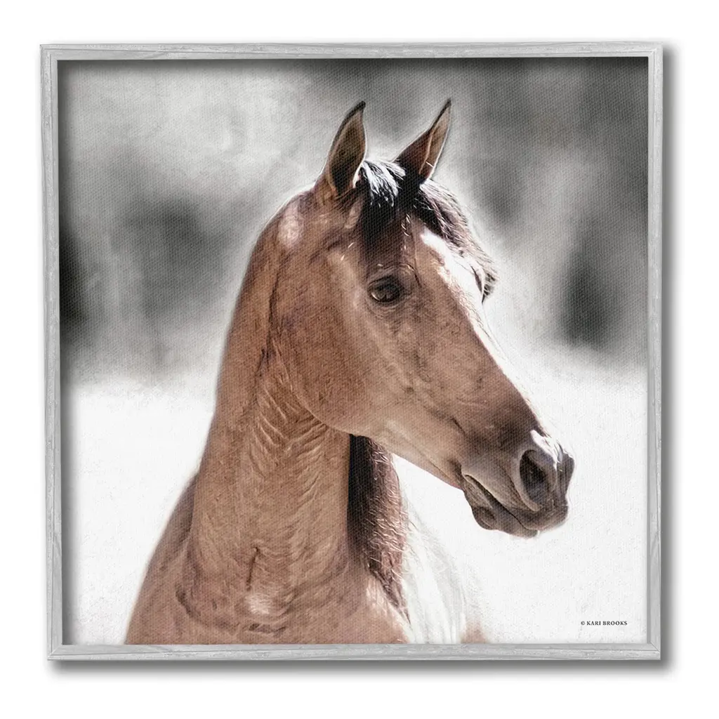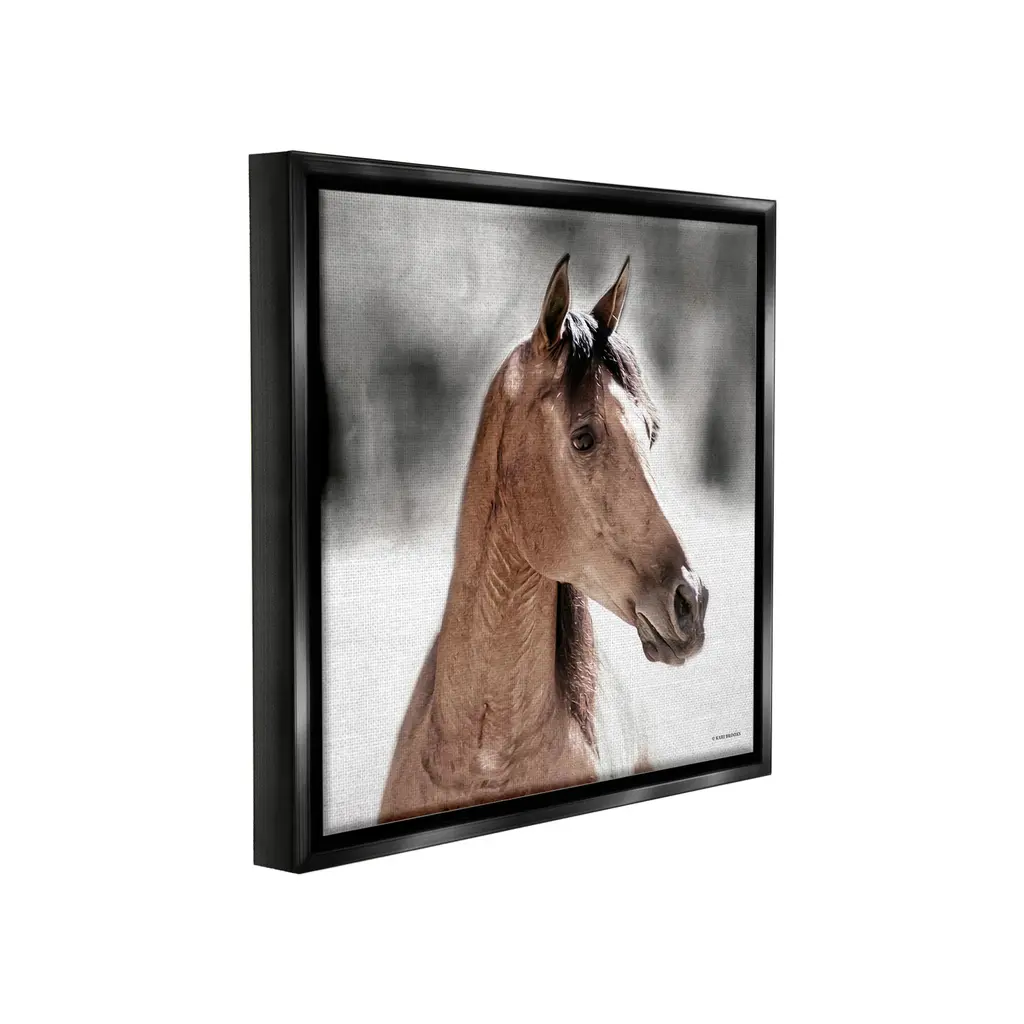 Elevate your home or office to the next level with Stupell Framed Floating Canvas Wall Art. Our premium hand-stretched canvas is mounted securely into a sturdy lightweight frame. The museum-style gap between the wrapped canvas and the box frame gives the illusion of floating artwork. Stupell Wall Art is made in the USA.Features: Dimensions: 18 x 1.7 x 18 Frame, 17 x 1.5 x 17 Canvas ArtFloating Frame Canvas Products are available in sizes 18"x18" and 25"x25". All Floating Frame Canvas Products have a 1.7" Depth.Wall Art is Ready to Hang with Hardware Free Hanging. No Installation required. For Easy Set Up Lean or Layer Artwork on Shelf or Against Wall. Artwork is Permently Fixed into the Frame.Our elevated 1.7" Thick Floating Frame is the perfect complement to our canvas style Wall Art. We use only the highest quality inks in house with industry leading printing solutions. Canvas is hand stretched over a durable wood foundation and then mounted securly into a Modern Box Frame. Made in the USA.Artwork Relates To: Animal, Horse, Mammal, Stallion, Foal, Landscape, Nature, Snow, Winter, Farm, CountryDesign by Kari Brooks