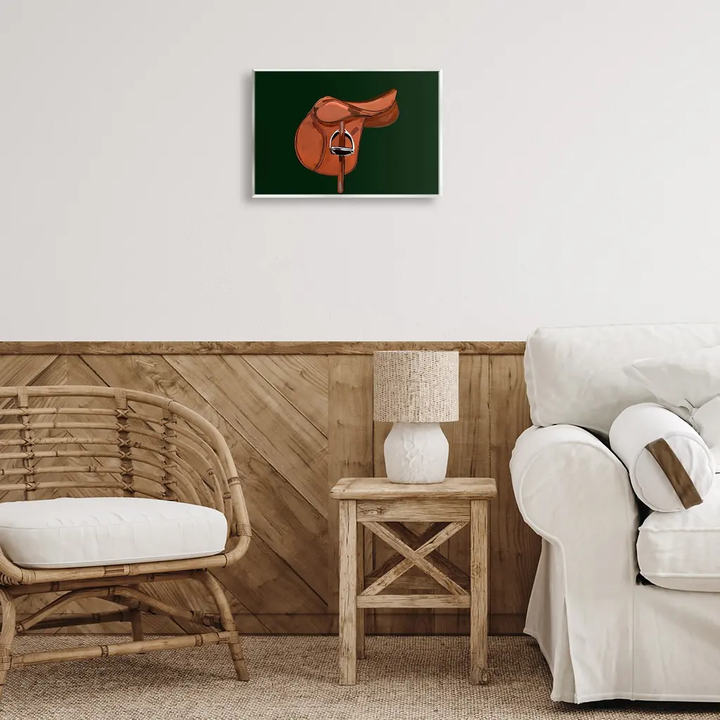 Our wall plaques start as high-quality lithograph prints mounted on durable 0.5-inch thick MDF wood. Each piece is hand finished and comes with a fresh layer of white foil on the sides to give it a crisp, clean look. Plaques arrive ready to hang without installation and come with removable plastic corners to keep them from damage in transit. Stupell Wall Art is made in the USA.Features: Dimensions: 15 x 0.5 x 10 InchesWall Plaque Product Sizes Include 15"x10" and 19"x13". All wall plaque products have a 0.5" Depth. Wall Art is Ready to Hang with Hardware Free Hanging. No installation required. For Easy Set Up Lean or Layer Artwork on Shelf or Against Wall.All of our wall plaques start off as high quality lithograph prints that are then mounted on durable 0.5 inch thick MDF wood. Each piece is hand finished and comes with a fresh layer of foil on the sides to give it a crisp clean look. Made In USA.Artwork Relates To: Equestrian, Horse, Saddle, Cowboy, Cowgirl, Western, CountryDesign by Amelia Noyes